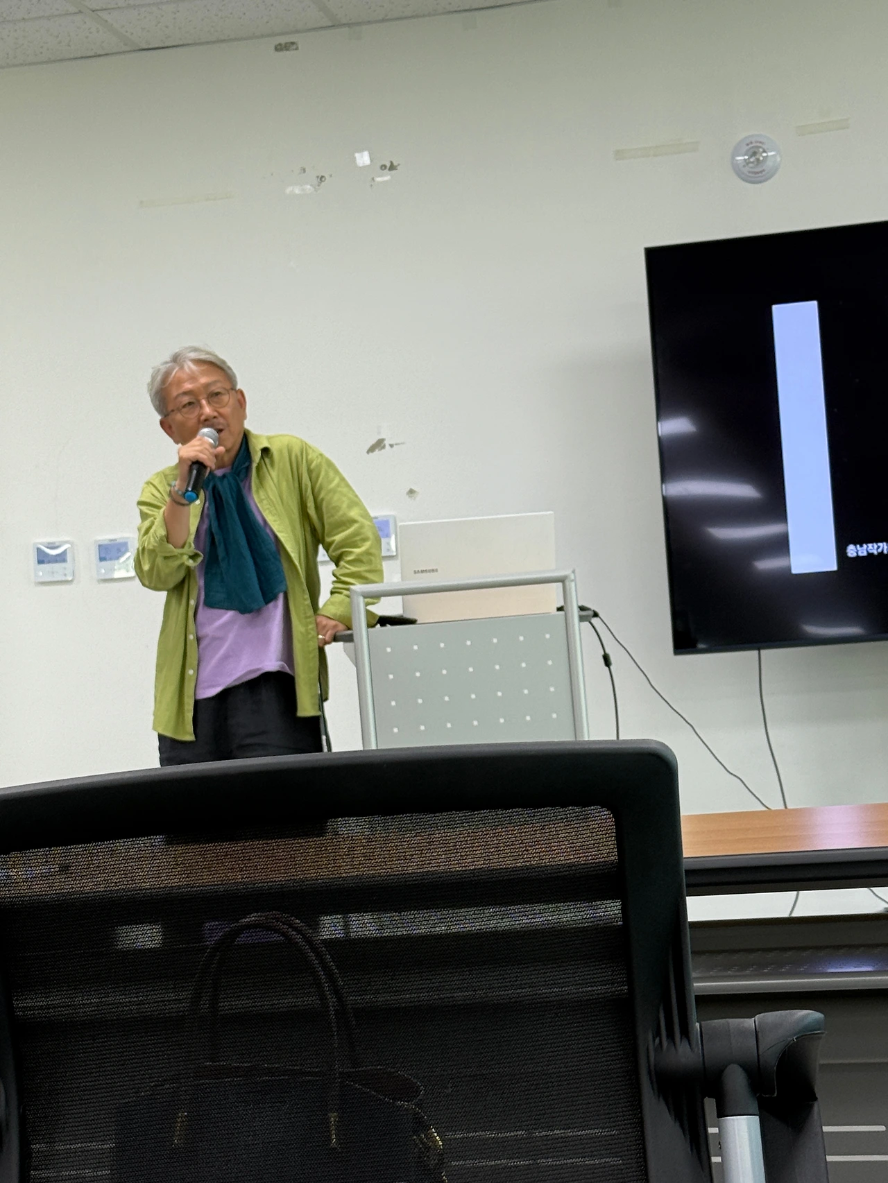 정진채 가수가 기타를 메고 나와 안학수 시인의 동시를 가사로 만든 노래 '시곗소리' 등을 직접 들려주었고 이어 이정록 시인이 나와 안학수 시인의 유고 시집 발간의 진척 상황을 보고 했습니다. 안 시인의 호가 봉갑이라는 걸 설명하면서 "봉우리 봉 자에 갑을병정 할 때의 그 갑이유."하고 충청도 사투리를 쓰니 정겨웠습니다. 이어 김환영 작가가 판화로 그림을 넣기로 했다고 말하고 '표 4'에 들어갈 자신의 글을 슬쩍 읽어 주었는데 깜짝 놀랐습니다. 너무 명문이라서요. 특히 마지막 줄 '부럽다고 일찍 가지는 맙시다'는 구절은 살짝 눈물겨웠죠.
