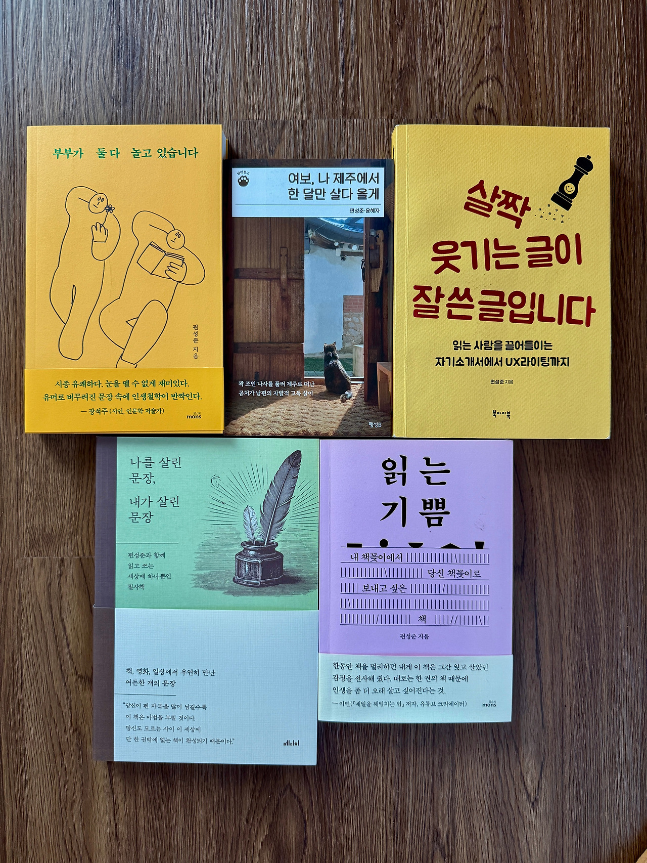 그래서 내일 '부자책방 북토크'는 어느 한 권에 대해 설명하는 게 아니라 그동안 내가 쓴 책 다섯 권을 모두 다룬다고 대답했습니다. 강연처럼 PPT 띄워놓고 설명하는 북토크가 아니라 내가 광고 일을 그만두고 책을 쓰기로 결심했던 때 얘기, 출판기획자인 아내와 살게 된 얘기, 글을 씀으로써 다른 삶을 살게 된 얘기, 글을 쓰면 인생이 어떻게 달라지는지, 글쓰기엔 어떤 효능감이 있는지, 글쓰기 강연은 어떻게 하는지...... 등등에 대해 얘기하고 질문도 받을 것이라고 말했습니다. 생전 이런 일로 통화를 하게 될 줄은 몰랐다며 껄껄껄 웃고 전화를 끊었습니다.