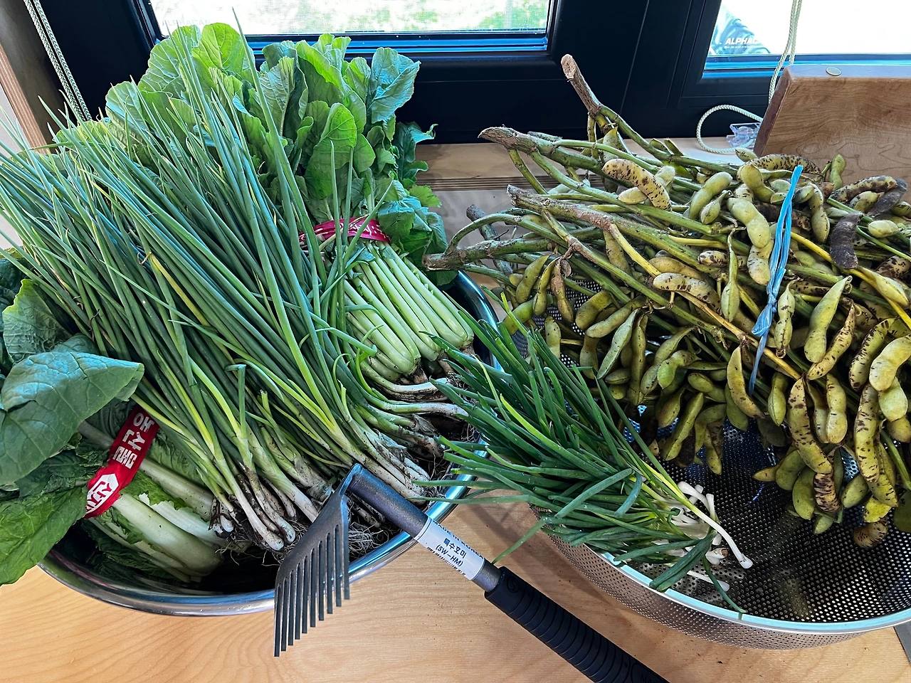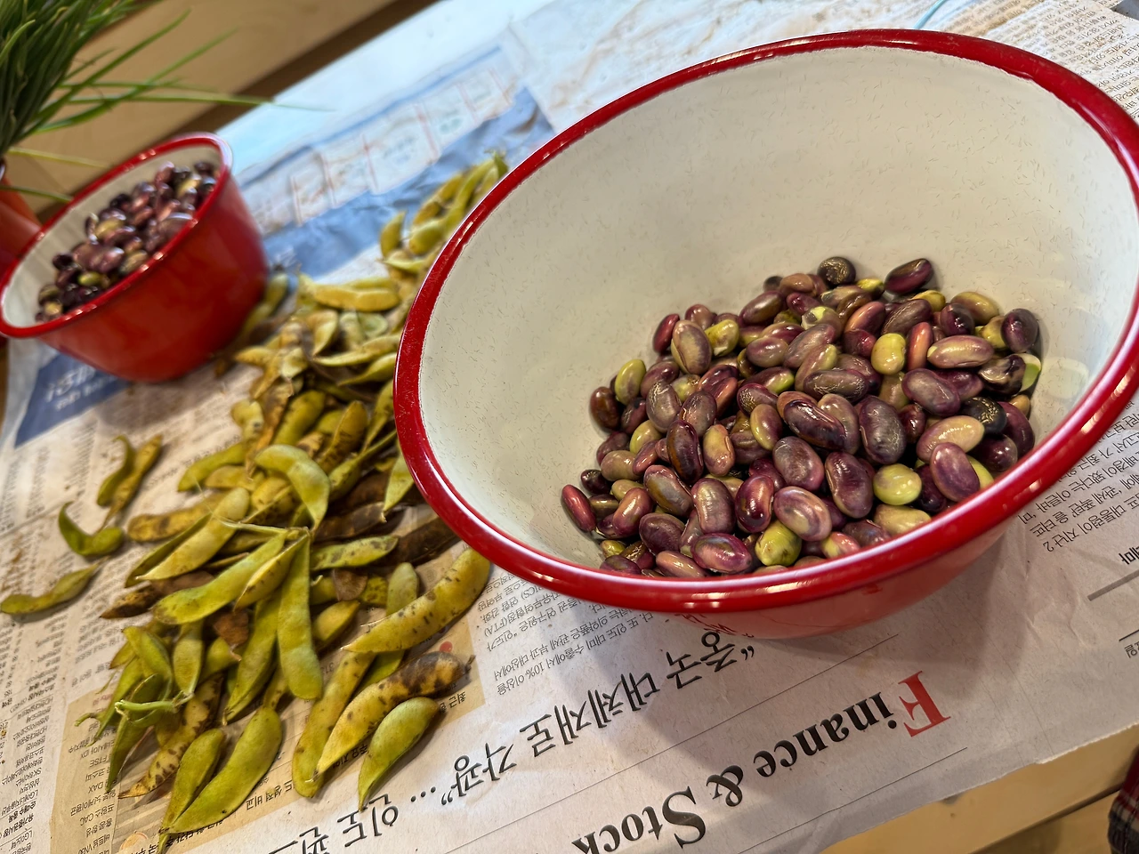 집에 와 서재에서 잠깐 일을 하다가 아래층에서 계속 움직이고 있는 아내에게 갔다. 아내는 파김치를 담그고 나는 콩을 깠다. 콩 꼬투리가 단단해서 잘 까지지 않았다. 30분 정도 쉬지 않고 콩을 까다가 오른손 엄지손톱이 들려 피가 났다. 나는 호들갑을 떨며 손톱에 알코올을 들이붓고 반창고를 붙였다. 내가 까 놓은 콩들을 보며 아내는 할머니에게 또 속았다며 웃었다. 역시 양이 얼마 되지 않는 것이다. 마트에 가면 훨씬 좋은 농산물을 많이 팔지만 그래도 시장에 가는 재미가 있으니 어쩔 수가 없다.