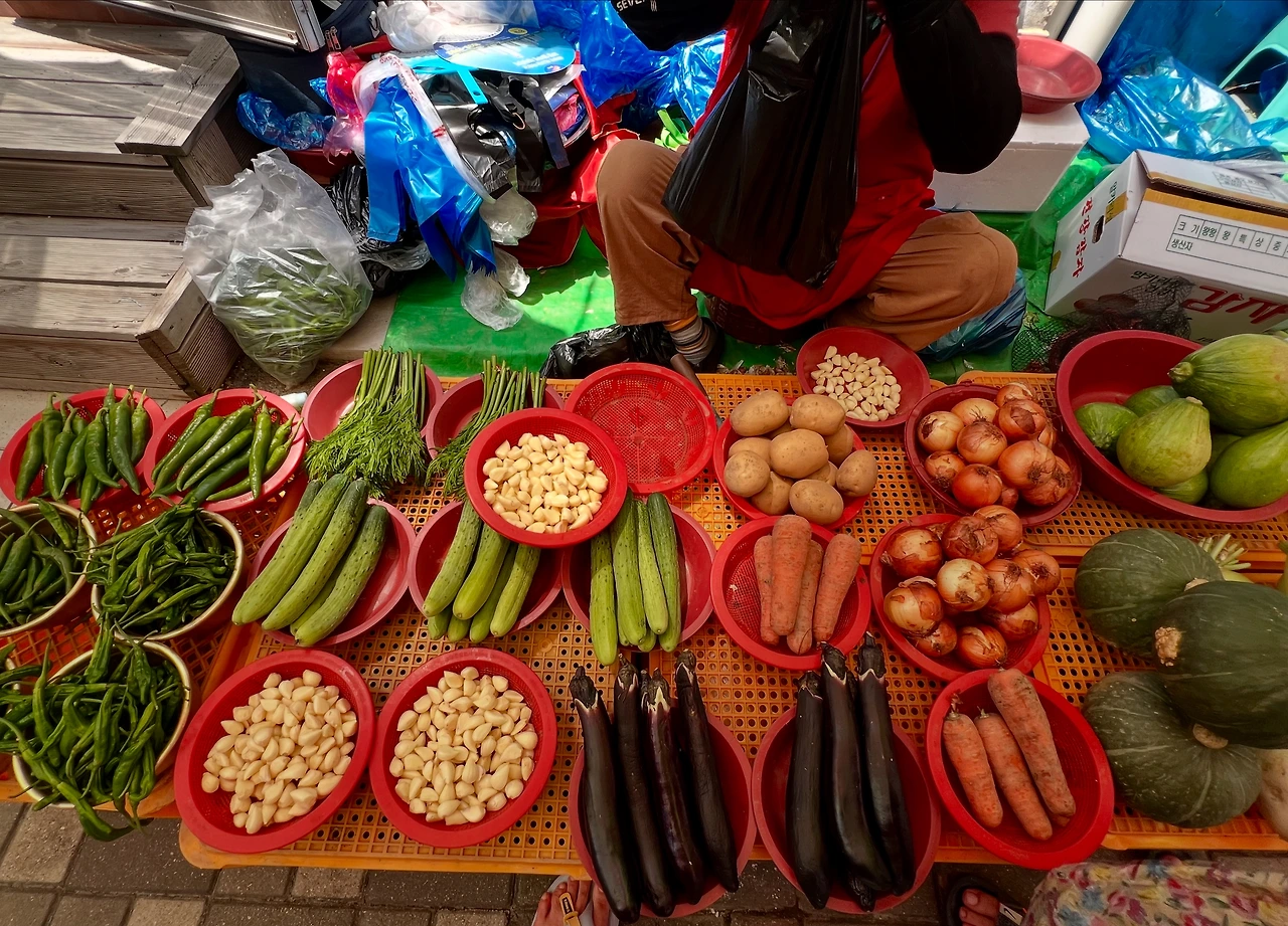구경이나 하자고 하던 아내는 집에 김치가 다 떨어졌으니 파김치나 담가야겠다며 쪽파를 한 묶음 샀다. 나는 지갑을 꺼내 아내에게 현금을 건넸다. 돈을 내니 아저씨가 덤으로 한 움큼을 더 넣어주었다. 사는 김에 배추도 좀 사고 콩도 샀다. 한 할머니가 깐 콩 옆에 꼬투리째 붙어 있는 서리태를 놓고 있길래 얼마냐고 물었더니 만 원이라고 했다. 꽤 묵직했지만 아내는 막상 까보면 양이 얼마 안 될 거라고 속삭였다. 장에 나와 물건을 파는 상인들 중엔 젊은 사람도 있지만 대부분은 할머니들이다. 아내는 시장을 자주 다니다 보니 이제는 척 봐도 농사지은 걸 가져온 할머니인지 그냥 고용된 할머니인지 알 수 있다고 한다. '고용된' 할머니들은 콩이나 가지, 오이, 호박 같은 걸 앞에 조금 놓고 최대한 불쌍한 표정으로 앉아 있다가 다 팔고 나면 주인이 세워 놓은 트럭을 타고 의기양양하게 집으로 간다. 그걸 알면서도 사람들은 할머니의 연기에 속아주며 기꺼이 지갑을 여는 것이다.