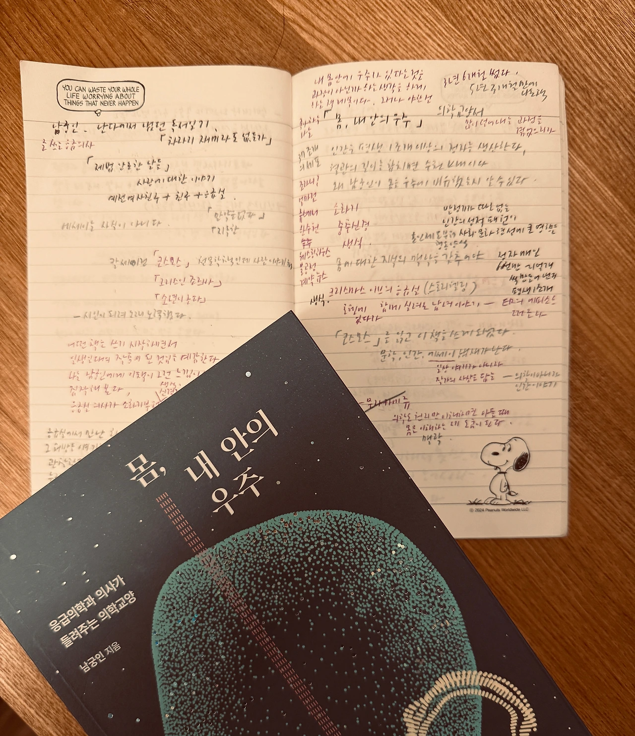 제목을 읽고 내 몸 안에 우주가 있다는 것은 과장이 아닐까 하는 의심을 하며 책장을 열었다. 하지만 남자 인간이 평생 일조 개 이상의 정자를 생산한다고 하고, 혈관의 길이를 합치면 수천 킬로미터에 달한다고 하고, 인간의 몸을 구성하는 세포는 37조 개라는 글까지 읽고 나니 내 몸이 우주라는 말이 좀 수긍이 되었다. 백만, 천만, 억, 십억, 백억, 그리고 조...... 조 단위는 얼마 전 뉴스에서 한수원 웨스팅하우스 불공정 계약 뉴스에서 본 건 말고는 처음 아닌가, 하는 자조적 유머가 머릿속에서 꺼져 가던 작은 램프를 켰다.