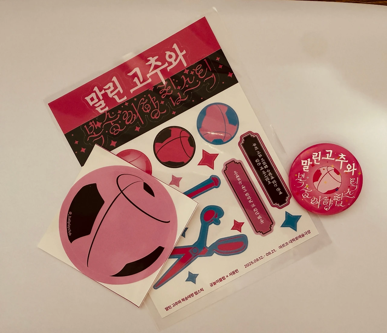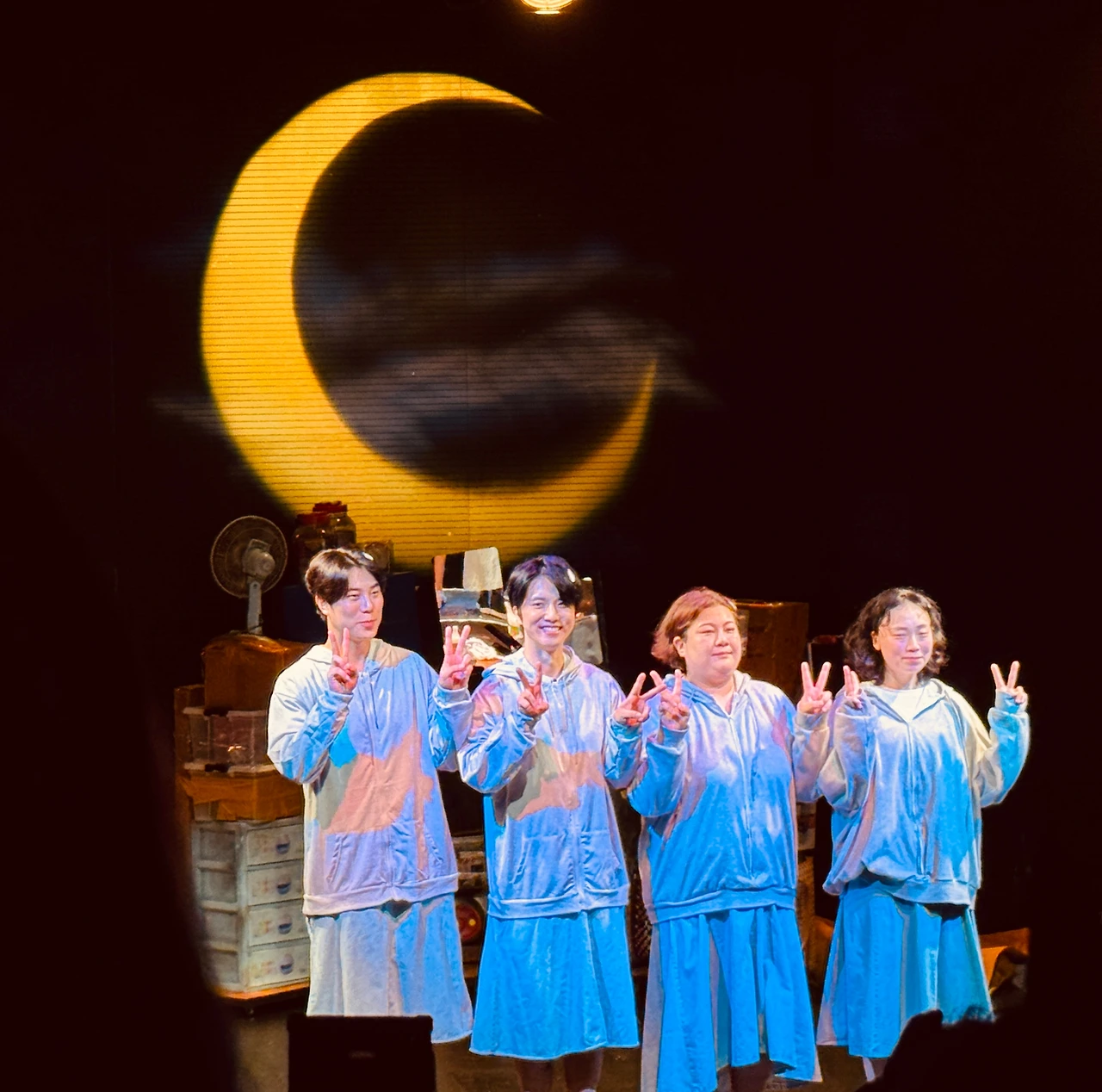 연극이 시작될 때 박은경 배우가 나와 "이 집에서는 고추 말리는 쿰쿰한 냄새와 습기 냄새가 진동한다"라고 투덜대는데 아마도 거기서 연극의 제목이 나온 것이다. 고추 말리는 냄새는 지금까지의 전통적이고 보수적인 세계를 표현하고 복숭아향립스틱은 상상도 못 했던 새로운 세계를 상징하는 것이다. 그 두 가지가 부딪치는 세계가 재개발 열풍이 불고 있는 은평구의 연립주택이다. 두 시간 가까이 되는 러닝타임 내내 객석에서 웃음이 끊이지 않았는데 그건 코미디 요소 때문이 아니라 공감 포인트가 많았기 때문이다. 특히 애니메이션 '세일러문' 주제가가 나오고 허공에서 마이크가 내려올 땐 너무 좋아 자지러지는 관객들이 속출했다(세일러문을 잘 모르는 나는 억울했다). 좋은 극본과 천재적 연출이 만나면 이렇게 된다. 자신의 화장품을 챙기러 다시 연립주택으로 온 오빠 장면 뒤로 "연극, 끝!"을 외치는 박은경 배우의 경쾌한 목소리를 뒤로 하고 기분 좋게 극장을 나섰다. 기회가 되면 꼭 보시고 아니면 내년을 기다리시라. 아르코예술극장 소극장에서 2025년 9월 21일까지 공연한다.