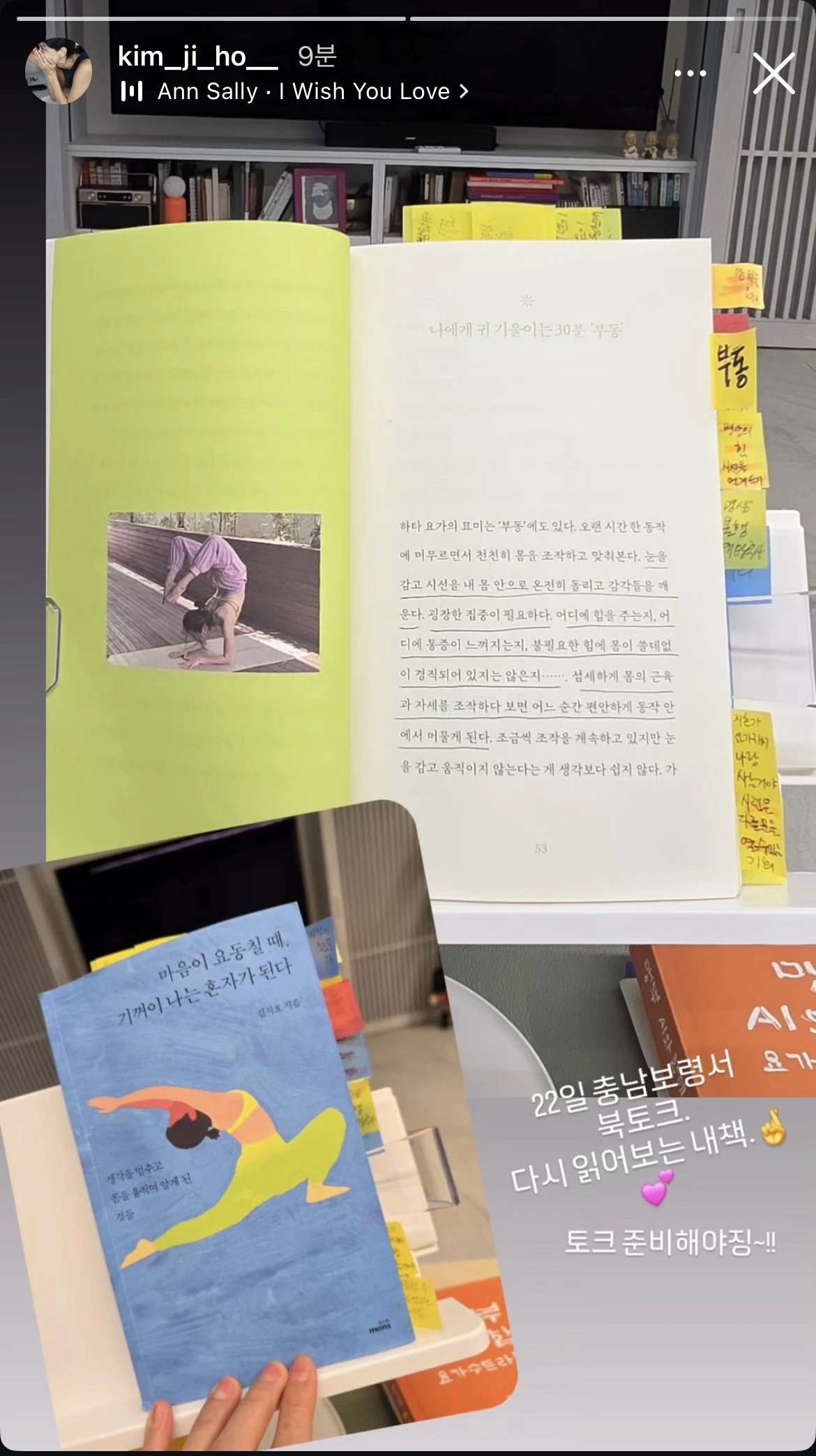 데뷔 30년, 요가를 한 지 10년이 된 김지호 배우가 첫 책을 들고 보령시립도서관으로 북토크를 하러 옵니다.