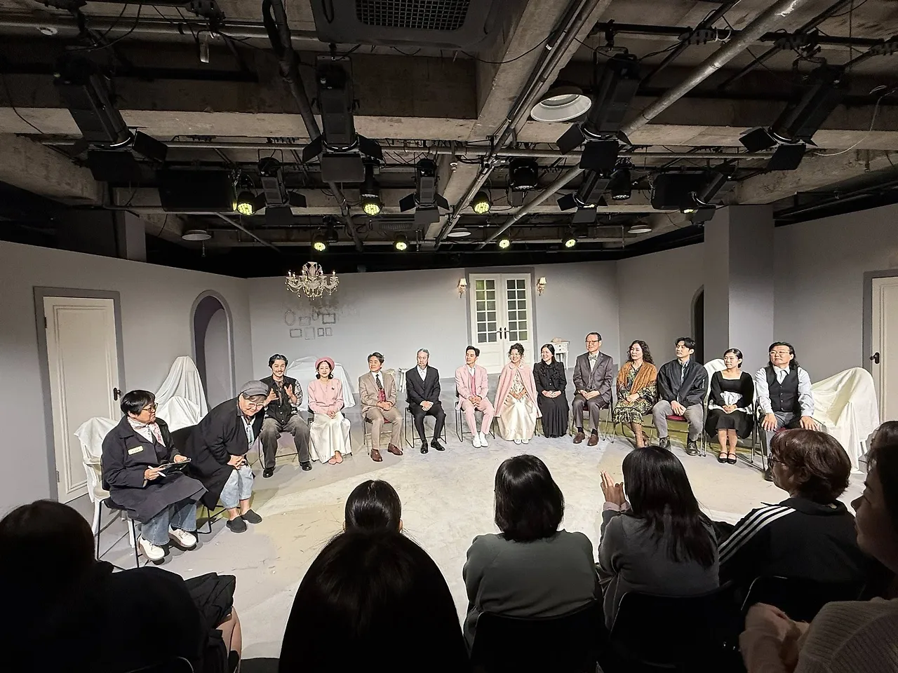나는 관객과의 대화에서 딱 한 사람만 질문을 할 수 있다는 진행자의 말에 얼른 손을 들고 김시유 배우에게 '역대 로빠힌 중 가장 왜소한 배우였는데 그 역을 맡을 때 심정이 어땠는가'와 '로빠힌은 벚꽃동산을 차지하고도 마냥 기뻐하지는 못하는 이유가 무엇이라 생각하느냐'라고 물었고 김시유 배우의 대답에 감탄했다. 그는 엄연한 계급사회였던 당시 러시아의 배경과 하층민 출신의 로빠힌이라는 사람의 내적 고민까지 모두 염두에 두고 복잡한 인물을 연기했던 것이다. 행사가 끝나고 극장 밖으로 나와 만난 김시유 배우는 '문삼화 연출이 로빠힌은 좀 무식하고 거칠었으면 좋겠다고 해서 일부러 양복에 흰 양말을 신었다'라는 깨알 정보도 들려주었다. 자세히 보면 로빠힌이 입은 양복도 사이즈가 좀 커서 줄인 채 입은 걸 알 수 있다는 것이다. 이런 세심한 노력들이 좋은 연극의 바탕이 된다는 것을 다시 한번 깨닫고 있는데 마침 의상을 맡은 최원 선생을 만나 반갑게 인사를 드렸다. 문예주 배우와는 12월에 올라가는 신작으로 다시 만나기로 했다. 연극도 좋았고 사람들도 정다워 이래저래 기분 좋은 저녁이었다.