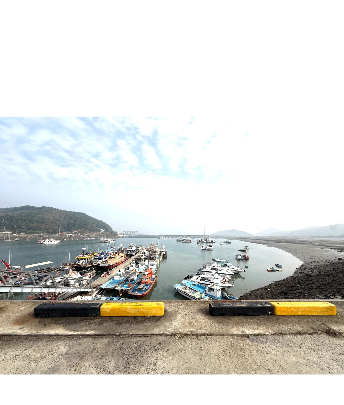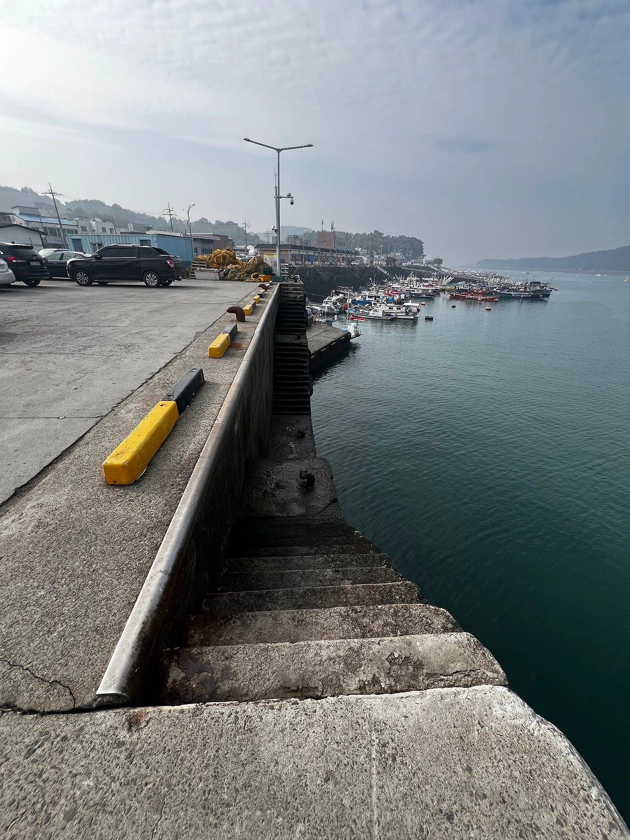 보령 오천항은 천수만 안쪽의 잔잔한 천혜 항구인데 주변 산세가 방파제 역할을 해 사계절 배들이 평화롭게 떠 있는 게 자랑거리라고 했다. 키조개와 홍합이 많이 나기로 유명한데, 바다는 예뻤지만 방파제와 바다 사이에 난간이 없고 바로 꺾어 지른 절벽이라 고소공포증이 있는 나는 좀 어질어질했다. 아내도 겁난다면서 얼른 나가자고 했다.