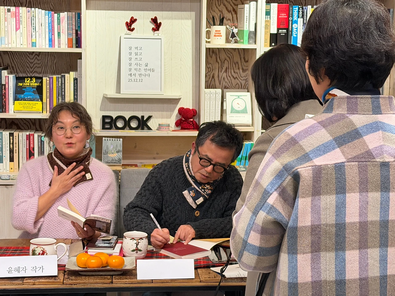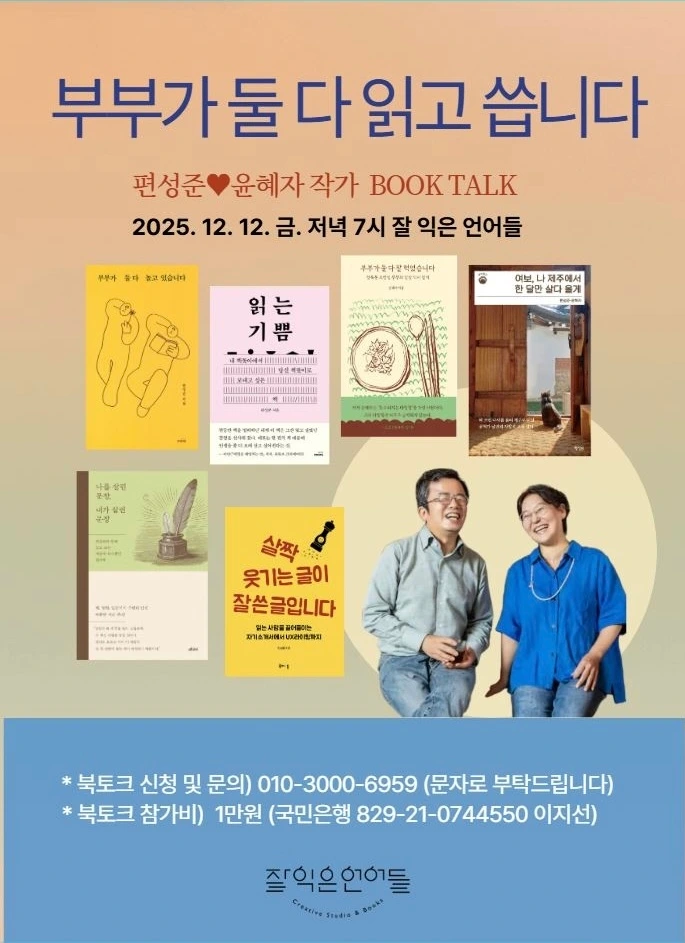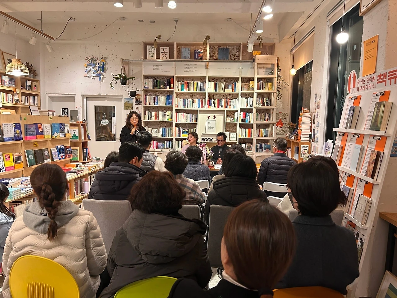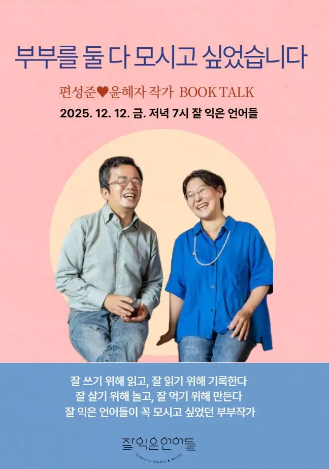 이지선 대표는 북토크를 하는 이유로 "북토크를 하면 그 핑계로 서점에 한 번 와보는 분들이 생기고, 그 후로 거리감이 없어져 또 오시게 되는 선순환"에 대해 얘기했다. 아울러 5년 전 내 첫 책이 나왔을 때 북토크를 하자고 연락을 했으나 코로나 19 시국 때문에 무산되었던 기억도 새롭게 꺼냈다. 그동안 나는 네 권의 책을 더 썼고 아내 윤혜자도 한 권의 책을 써서 합동 북토크를 하게 된 것이다.