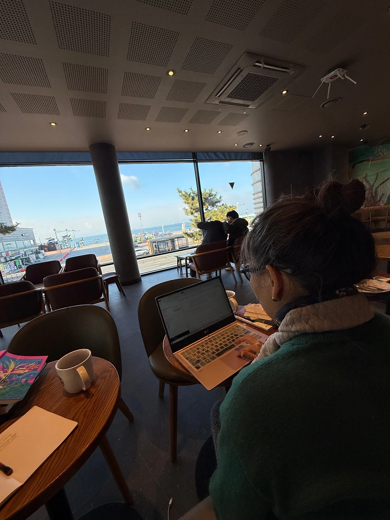 아침에 집 뒤 봉산으로 산책을 나섰다가 아내에게 전화를 걸었다. "여보, 우리 대천해수욕장 갈까?" 아내가 반색을 했다. "그럴까?!" 차를 몰고 20분 거리에 있는 스타벅스 대천해수욕장점으로 갔다. 아침 일찍이라 한산했고 해수욕장 앞엔 치우지 못한 촌스러운(?) 크리스마스 장식들이 널려 있었다. 우리는 커피와 베이글, 샌드위치 등을 먹으며 이런저런 이야기를 나누었다.