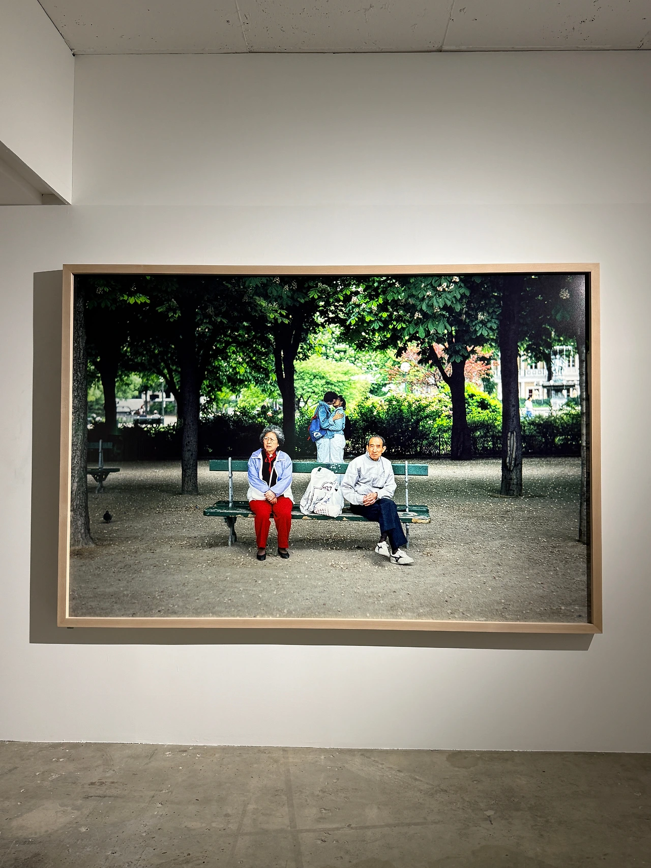 쇼핑백을 가운데 두고 공원벤치에 떨어져 앉아 있는 노부부 뒤로 키스하고 있는 연인의 모습이 포착된 사진은 당연히 연출일 것이라 생각했다. 하지만 그게 카메라를 들이댔을 때 우연히 만들어진 구도였다는 설명을 듣고 감탄했다. 이런 사진은 우연이 잡힌 행운이 아니라 늘 좋은 사진을 위해 '스탠바이' 하고 있던 작가에게 준 신의 작은 선물인 것이다. 지하철에서 잡지를 보느라 고개를 숙이고 있는 독일 신사의 깊게 패인 주름부터 포장마차 안에서 살짝 키스하는 일본 젊은이들의 실루엣, 기나 긴 잔디밭 앞에서 빨간 윗도리와 희 치마를 입고 무심히 안아 있는 젊은 날의 부인까지 박용만 작가의 사진엔 순간을 담아내려는 기다림과 함께 사람에 대한 연민과 애정이 묻어난다. 인간이나 사물의 삶은 다 제각각이지만 그의 카메라 앵글에 들어오는 순간 의미와 애정이 생기는 마법이 일어난다. 당장 눈에 보이는 아름다움이 아니라 아름다움이 지나간 자리에 남는 삶의 흔적을 찍는, 박용만 작가의 작품을 한 번 보러 가시기 바란다. 2월 15일까지 명동에 있는 피크닉(piknic) 1층부터 4층에서 전시하다. 관람료 무료다.