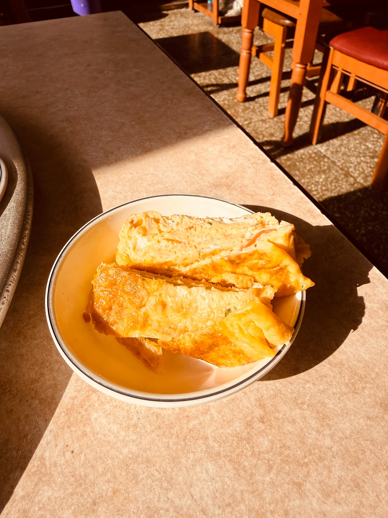 사장님이 쟁반에 얹어 가져오신 밥과 아욱국, 반찬들을 보니 너무 좋아서 입이 딱 벌어짐. 이것만 해도 진수성찬인데 사장님이 어이쿠, 계란이 빠졌네 하시며 얼른 계란말이를 가져다주심. 계란말이가 3개 나왔는데 허겁지겁 하나 먹고 나머지 두 개만 스마트폰으로 찍음.