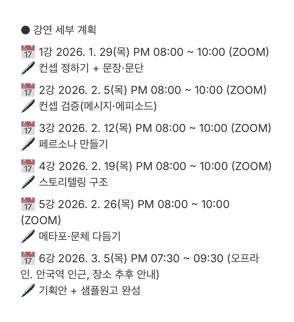 책을 한 번쯤 내보고 싶었던 분께 현실적인 루트를 열어보려 합니다.이번 6주 수업의 목표는 “글 한 편”이 아니라 출간 가능한 원고 패키지(기획안+샘플원고)를 완성하는 것입니다.