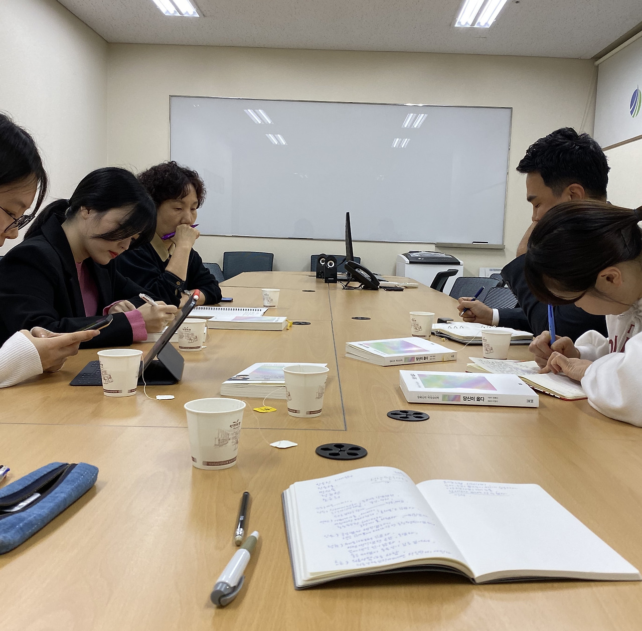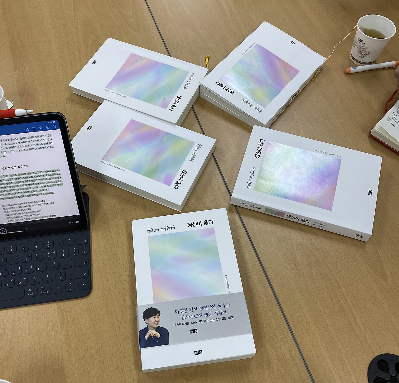 첫 번째 책은 정혜신 선생이 쓴 [당신이 옳다]였습니다. 직장에서 아픔이나 어려움을 겪는 사람들을 특히 많이 만나야 하는 병원 클루들과 함께 읽기엔 참 적절한 책이었습니다. 저녁 6시에 병원에 도착해 일과시간을 마친 직원 다섯 분을 지하 1층 작은 회의실에서 만났습니다.