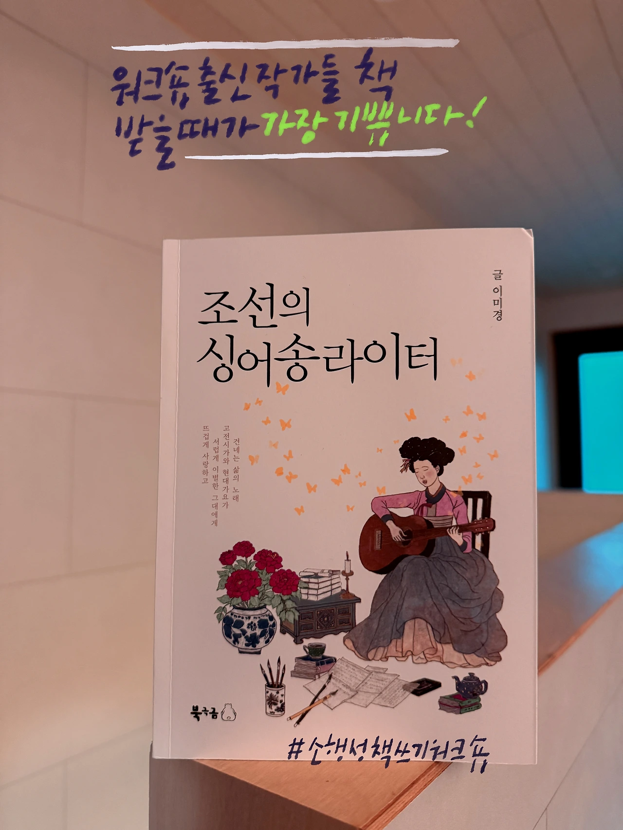 소행성 책쓰기 워크숍 멤버였던 이미경 작가가 첫 책을 보내왔습니다. 선생은 고전과목 일타강사였는데 조선의 고전시가를 현대가요와 연결시키는 원고를 쓰고 싶다고 하길래 제가 '조선의 싱어송라이터'라는 제목을 지어 드렸죠. 오늘 그 책이 실물로 도착한 걸 보니 감개무량하더군요.