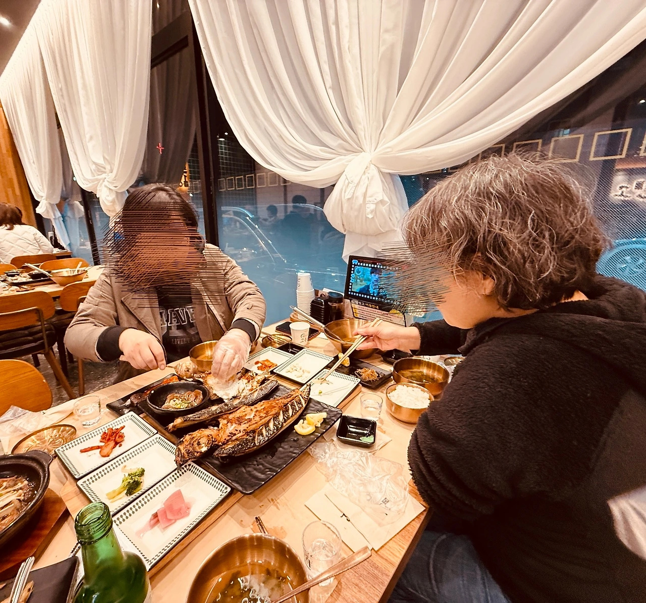 주유소 앞에서 윤 선생이 탄 택시를 얻어 타고 동대동에 있는 '달빛에구운고등어' 충남보령점으로 갔다. 3인분짜리 생선구이 안주를 시키니 푸짐했다. 윤 선생은 학교 선생님들은 다 좋은데 술을 안 마시는 게 흠이라고 했다. 우리는 소주를 벌컥벌컥 마시며 이문구 선생 이야기, 책과 인문학 강연 이야기 등을 하며 웃음꽃을 피웠다. 윤 선생이 처음 도서관에서 내 책 『읽는 기쁨』을 다 읽고 나오다 엘리베이터에서 나를 만나 큰 소리로 인사를 한 일, 오은 시인 북토크에서 내가 사회 본 이야기, PPT 화면 이야기 등을 또 했다. 해도 해도 질리지 않는 이야기가 몇 개 있는데 이것도 그중 하나라고 했다. 세 사람이 소주 다섯 병을 마셨다.