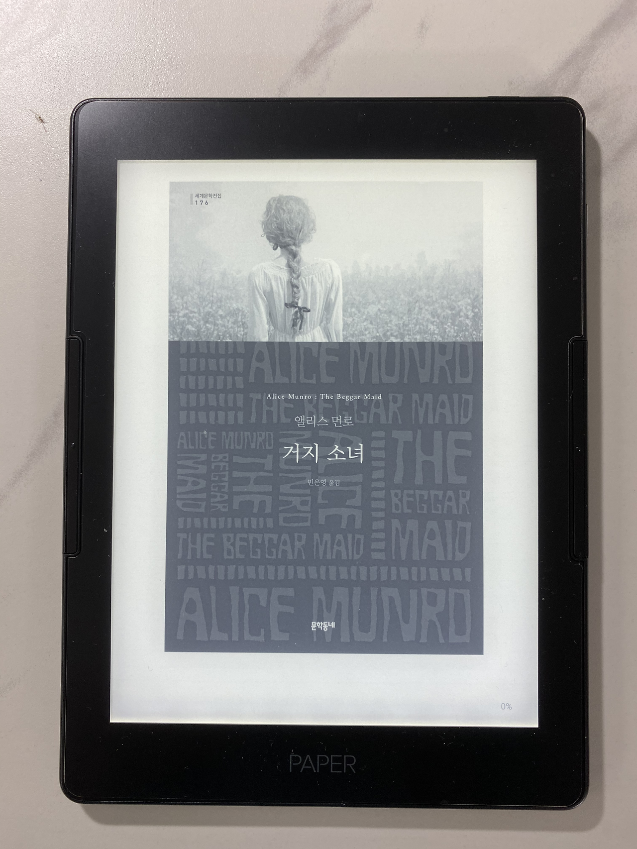 어제 산 소설가 정이현의 에세이 [풍선]을 조금 읽었다. [달콤한 나의 도시]나 <삼풍 백화점> 같은 그의 소설을 좋아하긴 했지만 이 산문집은 읽는 게 너무 힘들었다. 십여 년 전에 나온 책이라 그렇기도 했지만 [해변의 여인]이나 [혐오스런 마츠코의 일생], [밀양] 등 영화나 TV 프로그램을 보고 쓴 리뷰들이 너무 후진 것이다. 흡사 '행복전도사'로 유명했던 최윤희 씨가 초기에 쓴 영화평 같았다. 물론 최윤희 선생을 인간적으로 좋아하긴 했지만 솔직히 그녀가 연재했던 영화 칼럼은 너무 낯간지러운 수준이었다. 이처럼 마음에 들지 않는 글을 읽음으로써 야기된 의기소침을 극복하기 위해서는 잘 쓴 글을 읽는 것이 필요하다. 전자책을 뒤졌다. 이럴 때는 에세이보다는 소설이 좋다. 앨리스 먼로의 연작소설 [거지 소녀]를 찾아냈다. 이 소설은 소설가 김탁환 선생이 추천해 준 책이었는데 시간에 쫓겨 중간쯤 읽다 멈춘 상태였다. 마침 전에 읽다 멈춘 곳이 표제작인 단편 <거지 소녀>라 그걸 다시 읽었다.