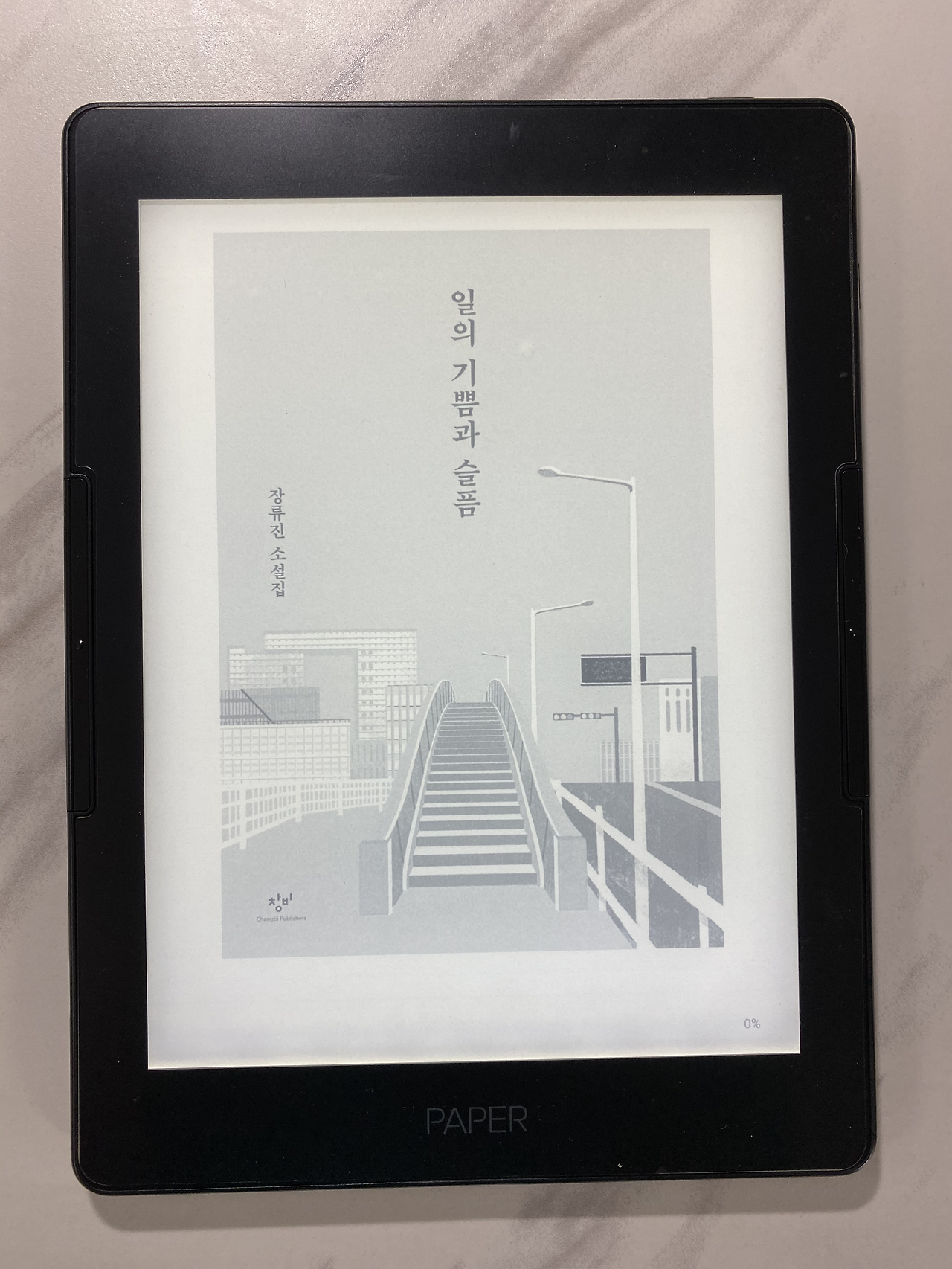 장류진의 소설집 [일의 기쁨과 슬픔]을 다운로드하여 읽고 싶어서 그제 갔던 커피숍에 다시 갔다. 뜨거운 아메리카노를 시켰더니 역시 비알레떼 포트에 가져다준다. 여기는 와이파이가 빵빵해서 에버노트나 예전 웹 상의 글들도 찾기가 아주 손쉽다. 나는 창비에서 나온 장류진의 소설을 내려받아서 리디북스 단말기로 읽기 시작했다. 표제작은 두 번째로 실려 있고 첫 작품의 제목이 <잘 살겠습니다>였다.
