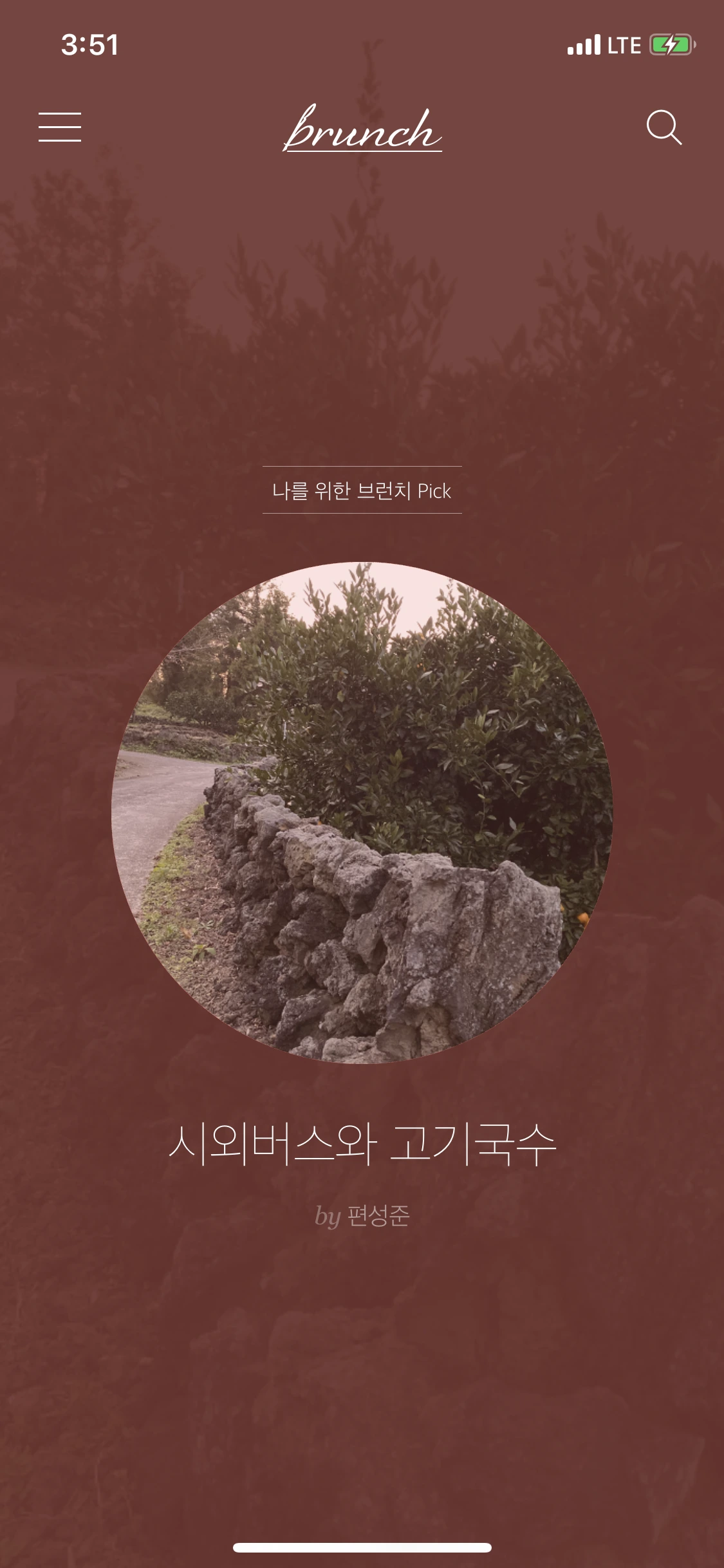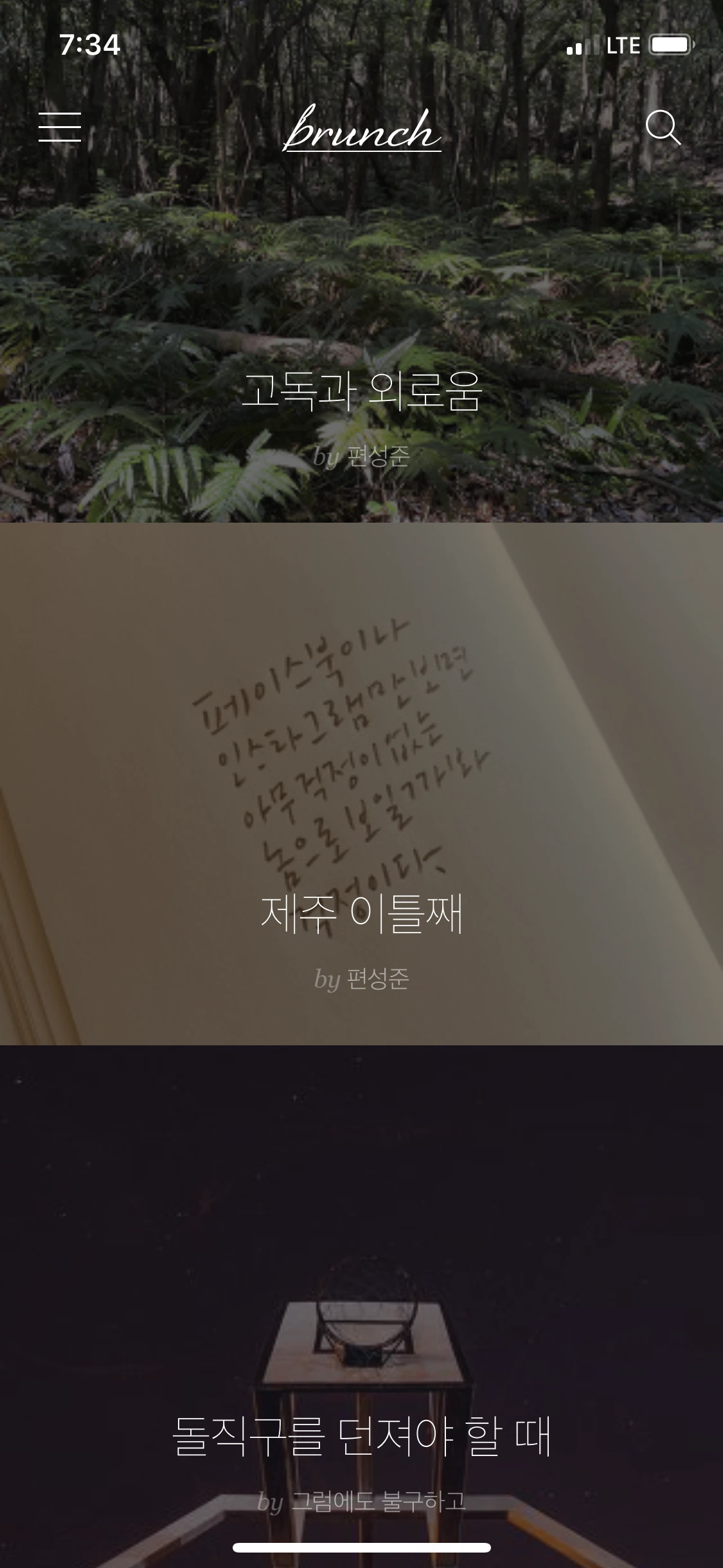 집에 와서 전에 써 놓은 원고들을 이리저리 고치기도 하고 목차에 맞게 배열도 하고 하면서 오전을 다 보냈다. 지금 이 순간, 이 넓은 집에 나 혼자 있고 또 내 마음대로 뭐든지 할 수 있다는 게 새삼 고맙고 즐거웠다. 글을 쓰다가 스마트폰으로 브런치에 잠깐 들어가 보니 의외로 내가 발행한 '아내 없이 제주에서 한 달 살기' 매거진 중 <A4지와 한우등심> 과 <시외버스와 고기국수> 등이 메인 페이지에 올라가 있었다. 아무래도 '제주에서 한 달 살기'라는 문장은 사람들의 부러움을 불러일으키는 주제인 것 같았다.