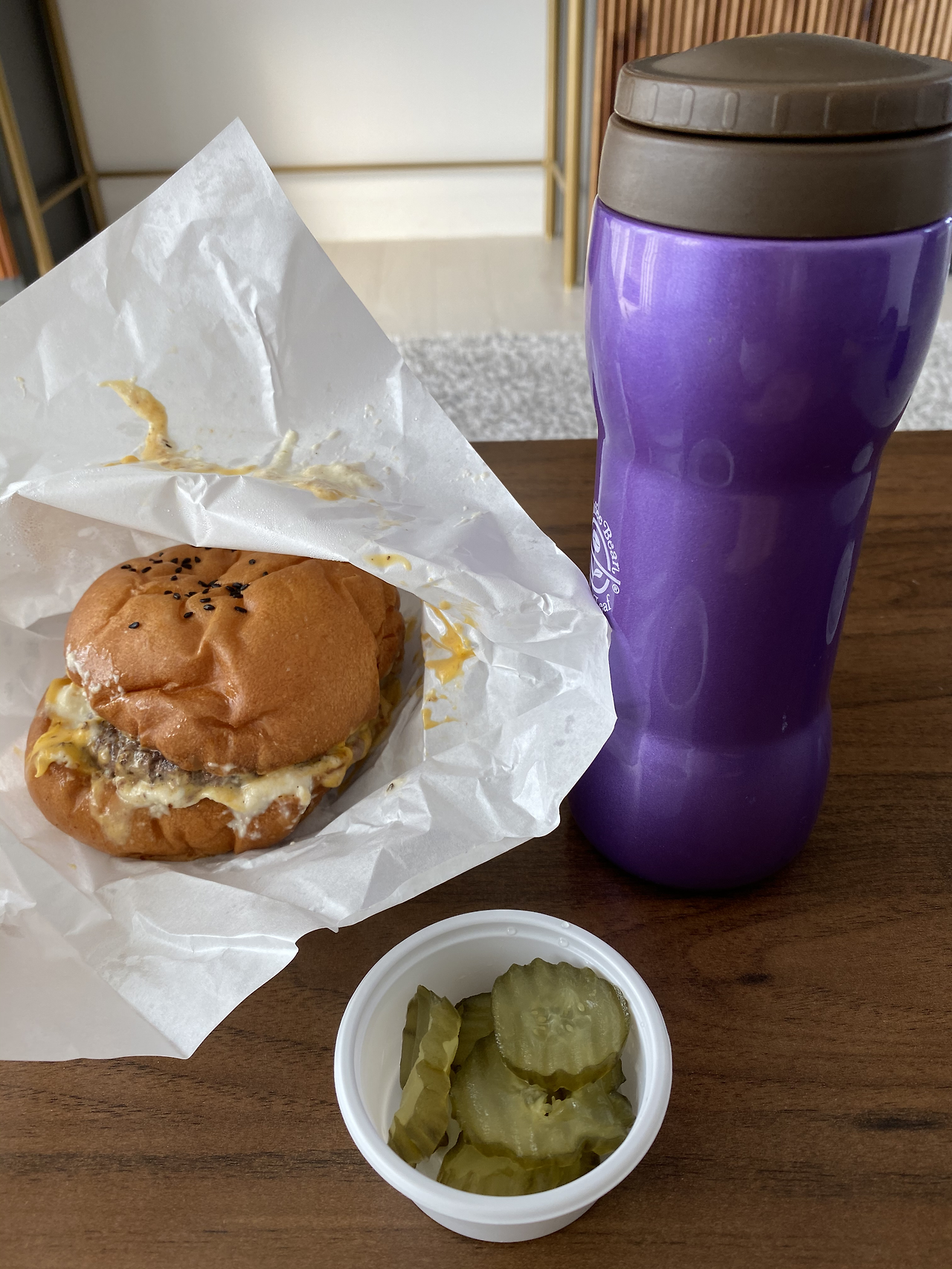 점심으로는 어제 국수를 먹던 식당 바로 앞에 있던 수제버거집에 가서 돈가스를 포장해 먹기로 했다. 젊은 사람이 하는 가게였는데 어제 국수를 먹고 나와 산 커피는 2천 원짜리라지만 양이 너무 적었다. 그래서 오늘은 텀블러를 들고 가서 햄버거와 커피를 주문했다. 원래는 돈가스를 사려고 했으나 카운터 앞에 있는 메뉴판에 수제햄버거 리스트가 먼저 나오는 바람에 순간적으로 햄버거를 사야겠다고 생각을 바꾸었다. 햄버거는 세 가지가 있었는데 볼케이노 수제버거는 매운맛이라 별미이고 웨어하우스 수제버거가 제일 잘 나간다고 했다. 나는 계란 반숙이 들어있는 써니사이드업 수제버거가 더 맛있을 것 같다고 말하며 그걸로 하나 달라고 했더니 젊은 주인이 약간 어이없다는 표정을 0.3초쯤 짓더니 곧 표정을 바꿔 알았다고 하며 웃었다. 햄버거 포장을 다 하고 계산을 하기 직전에 머신에서 커피를 내렸는데 텀블러를 채우느라 그랬는지 확실히 어제보다는 커피의 양이 많아졌다.