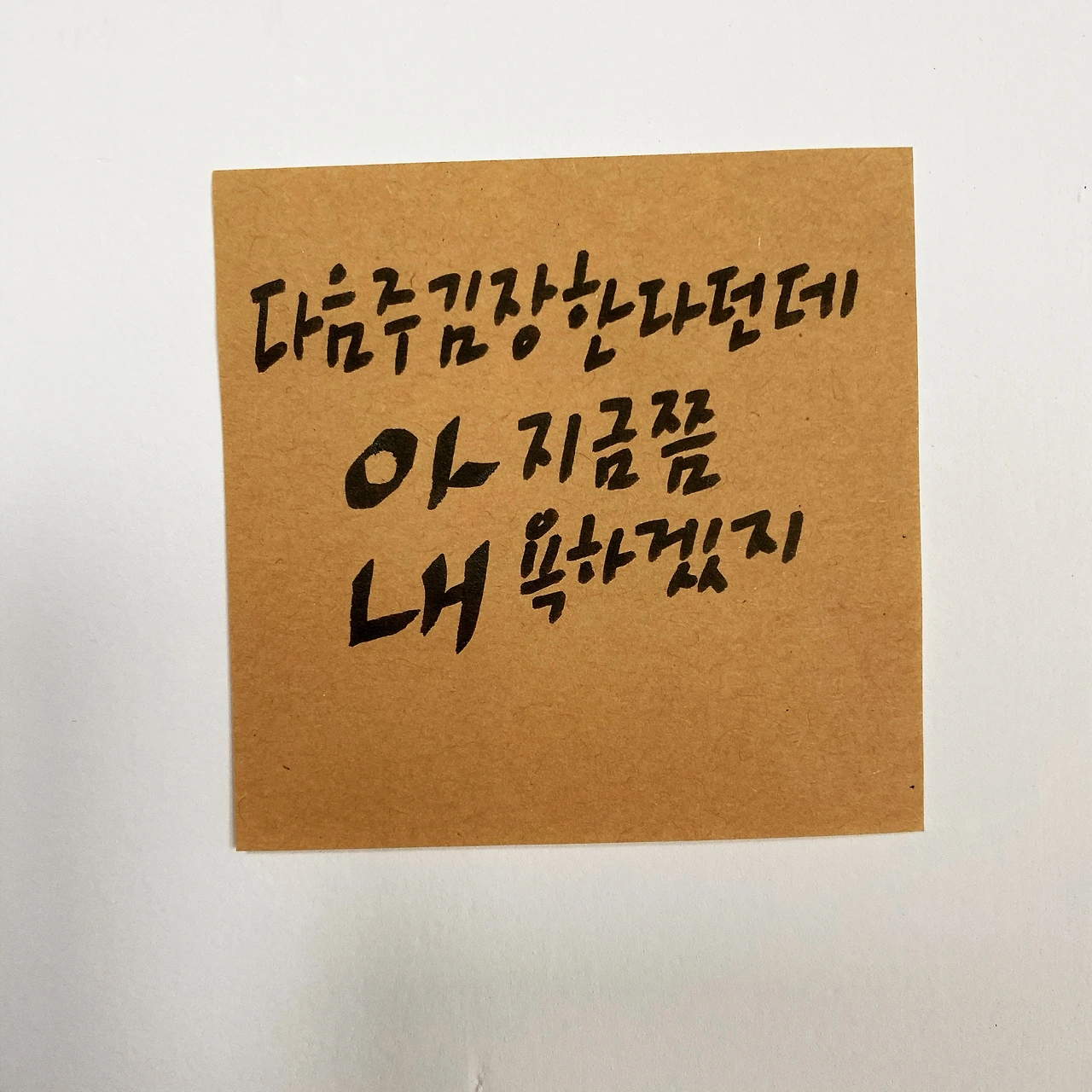 집에 들어와 마루에 작은 상을 펴고 앉아서 와챠플레이로 틀어놓은 [멜로가 체질] 재방송을 보면서 편하게 써니사이드업 수제버거를 먹었다. 맛이 괜찮았다. 햄버거를 다 먹고 양치를 하다 보니 아내는 김장을 한다고 벌써부터 분주한데 나 혼자 제주에서 뭐 하고 있는 건가 하는 자괴감이 들었다. 그런 생각을 하다가 식탁으로 돌아와 '아내 이행시'로 구성된 공처가의 캘리를 하나 썼다. 내용은 '아내는 다음 주에 서울에서 김장을 한다는데 나는 여기서 뭐 하고 있나. 아, 지금쯤 내 욕을 하고 있겠지.'라는 내용이었다.