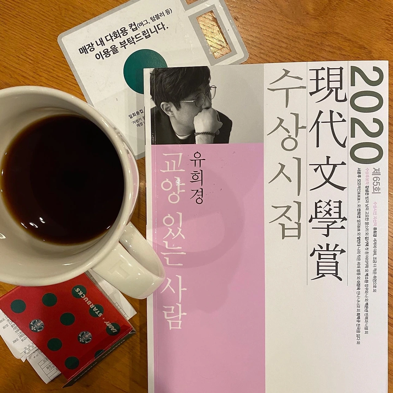 시집엔 수상작인 <교양 있는 사람>을 비롯해 여러 편의 시가 수록되어 있는데 유희경 시인은 자기 시 말고도 수상후보작 중 강성은, 박소란, 백은선, 안희연 등 모두 끝내 주는 시인들이라고 귀띔을 해주었다. 집에 와서 몇 편 읽어보니 '교양 있는 사람은 노크하며 묻는다 똑똑 계십니까'로 시작하는 <교양 있는 사람>이라는 시와 ‘창문을 열어두고 온 까닭은 조용한 일이 많기 때문이다’라는 구절로 시작되는 <감각>이라는 시가 제일 정답고 재미있었다. 시인은 맨 뒤의 수상소감 '우리는 왜 집으로 돌아가는 걸까요'라는 글에서 자신이 매일 오가는 길에 대한 이야기를 한다. 혼자 서점에 앉아 있는 이야기를 하고 저녁 창문에 있는 자신과 그 모습을 우두커니 들여다보고 있는 시인 자신의 이야기도 한다. 나는 유희경 시인의 이런 태도가 좋다. 시를 쓰는 게 특별한 일이 아니라 늘 걷는 일처럼 일상이 된 사람, 쓰다 보면 아무것도 아닌 것 같아서 때로는 절망도 하지만 결국은 또 새로운 시를 써보며 거기에 뭔가 있지 않을까 하는 희망을 버리지 못하고 열두 해 동안 버스 안 옆자리에 앉은 독자를 만나는 기분으로 꾸럭 꾸럭 시를 쓰고 지우고 했던 사람.