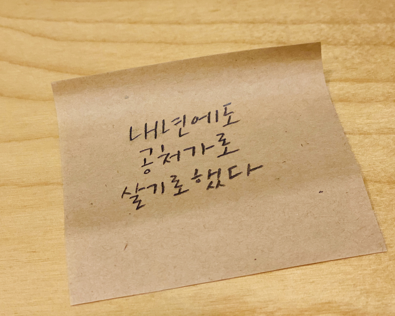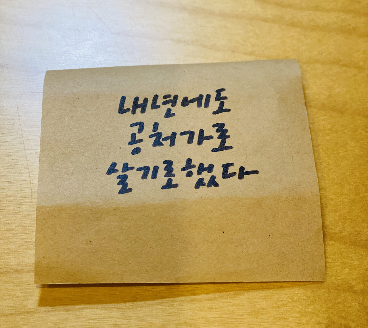 아내와 사이가 좋은 편이긴 하지만 평범한 애처가보다는 공처가로 사는 게 더 재밌겠다 싶어서 공처가의 캘리를 쓰기 시작했다. 올해는 정말 많은 일들이 있었다. 전격적으로 회사를 그만두었고 제주도에 내려가 아내 없이 한 달간 글 쓰고 책만 읽으며 지내보기도 했다. 그리고 새로운 매체에 짧은글 쓰기 칼럼 연재도 시작했다. 연말인 지난주엔 뜻하지 않게 정형외과에 입원을 해 어깨 시술을 받기도 했다. 고정적인 수입처가 없어진 현실에서 장차 어떤 일들이 일어날지 솔직히 두렵다. 그러나 아내 무서운 줄 아는 자가 성공한다는 생각엔 변화가 없다. 그러니 나는 내년에도 공처가로 살아갈 것이다. 어려울수록 단순하게 생각하라고 했다. 내년에는 딱 두 가지만 정하고 가자. 글을 쓴다. 아내 말을 잘 듣는다. 끝.
