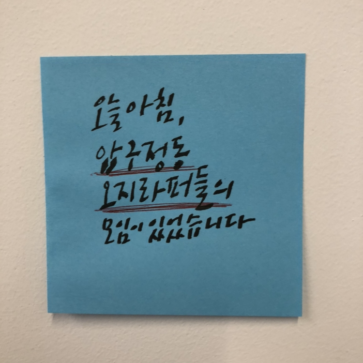 재중동포 아주머니의 휴대폰 중 유일하게(?) 사용 가능한 카메라로 투뿔등심 가로수길점까지 가는 약도를 촬영했다. 그리고 복덕방 아주머니가 밖으로 따라나와 손으로 길을 가리키며 저쪽으로 가다가 왼쪽으로 쭉 가서 두 블럭 지나 가로수길을 건너서...하며 목이 터져라 열심히 설명을 해줬다. 재중동포 아주머니는 연신 고맙다고 고개를 숙여 우리에게 인사를 했다. 재중동포 아주머니는 가로수길을 향해 바쁜 걸음을 옮겼고 복덕방 아저씨 아주머니 커플은 다시 들어가 블라인드를 마저 설치하기 시작했으며 나는 김밥천국으로 달려가 이천 원짜리 원조김밥을 한 줄 사서 사무실로 왔다. 2019년 1월 두 번째 화요일 아침에 벌어졌던 '압구정동 오지라퍼 커넥션'의 결말은 이렇게 싱거웠다. 그나저나 아주머니는 그 식당 잘 찾아 가셨을까. 오늘이 첫 날이라던데.