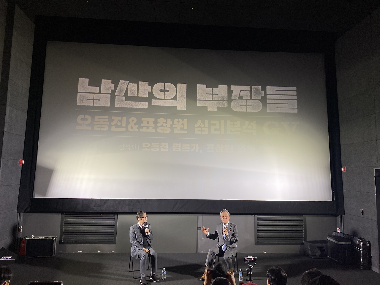 남산의 부장들은 개봉한 지 며칠 만에 챙겨봤던 영화지만 새로운 기분으로 흥미롭게 감상했다. 객석은 거의 다 차 있었다. 영화가 끝나고 오동진 기자와 표창원 의원이 나타나 '신종 코로나바이러스의 위협에도 불구하고 이렇게 많이 참석해주셔서 감사하다'는 인사로 행사를 시작했다.