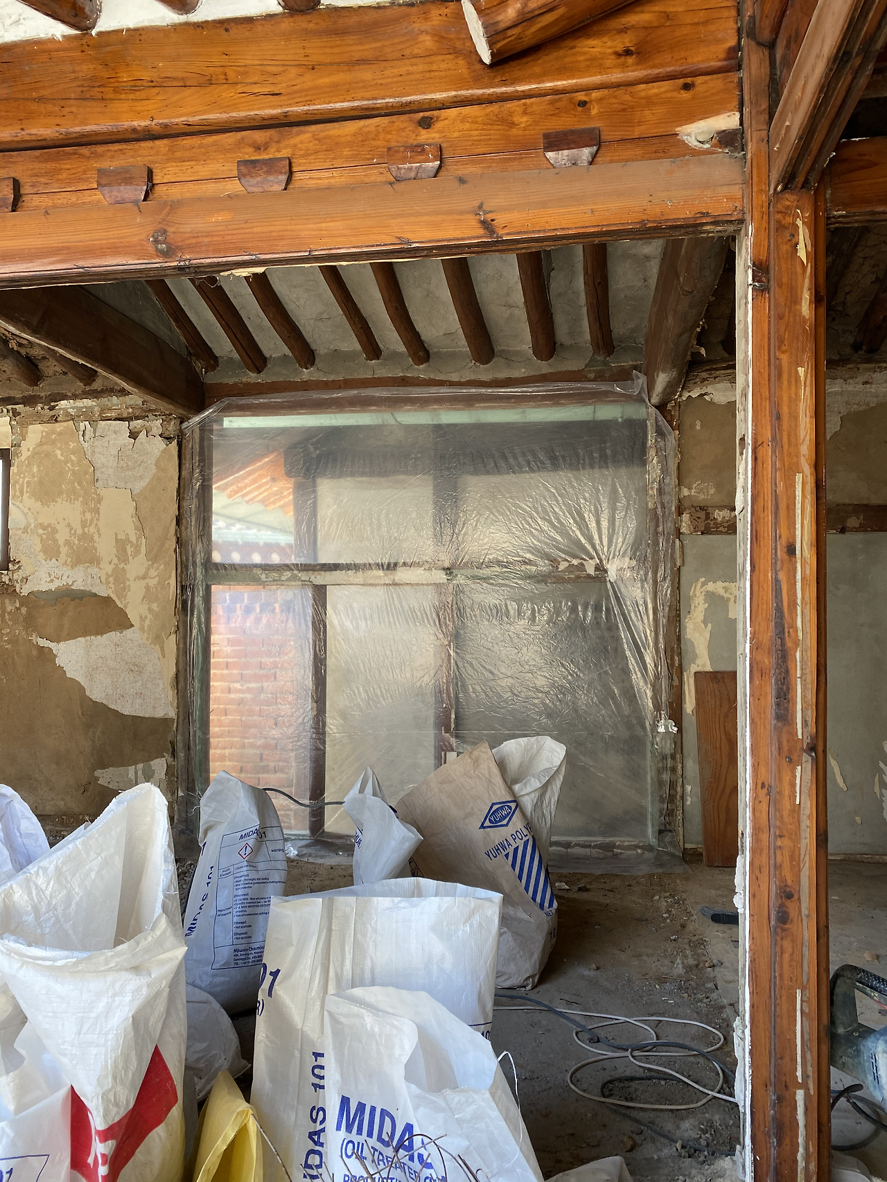 주방 쪽 벽에 비닐막을 쳐놨길래 물어봤더니 옆집에서 먼지 난다고 항의를 해서 비닐로 막은 것이라고 한다. 월요일까지는 철거가 계속되고 화요일부터 금요일까지는 '깎기'가 진행된다. 때 묻은 기둥과 서까래, 대들보 등을 사포로 벗겨내면 또 어떤 아름다움이 나타날까 자못 기대가 된다. 목수님 말에 의하면 먼지가 많이 나는 깎기 작업은 대표적인 3D 직업이라고 한다. 그만큼 노동 강도가 세다는 얘기일 것이다.