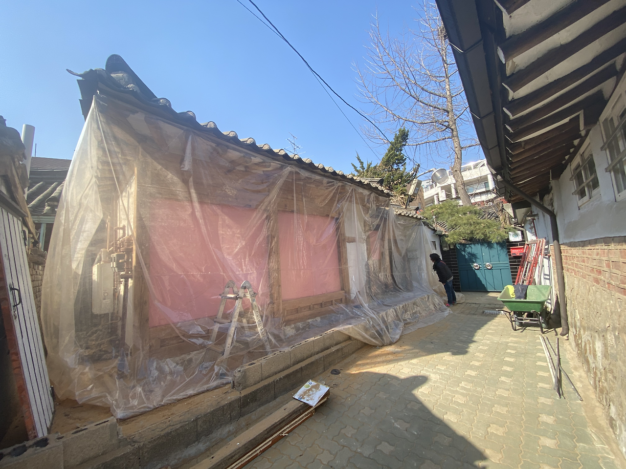 아내가 어젯밤 자리에 누운 채 내게 말했다. 생각해 보면 아득하기만 하다. 나는 회사를 그만둔 상태라 당장 생계를 꾸려나갈 일만 해도 벅찬 상황인데 아랑곳하지 않고 갑자기 집을 팔질 않나, 한옥을 사질 않나 난리 블루스를 춘 뒤 이젠 또 대대적인 수리까지 시작한 것이다. 게다가 지금 바깥세상은 온통 코로나 19에 휩쓸려 마비되어 있다. 한숨이 나오는 게 당연하다. 모르는 사람들은 '쟤들은 로또라도 맞았나 봐...' 하겠지만 그러지 못한 우리는 속이 타들어 간다. 그러나, 그래도, 지금 이걸 하지 않으면 영영 다시 이런 기회는 오지 않을 것을 알기에, 우리는 해야 한다.