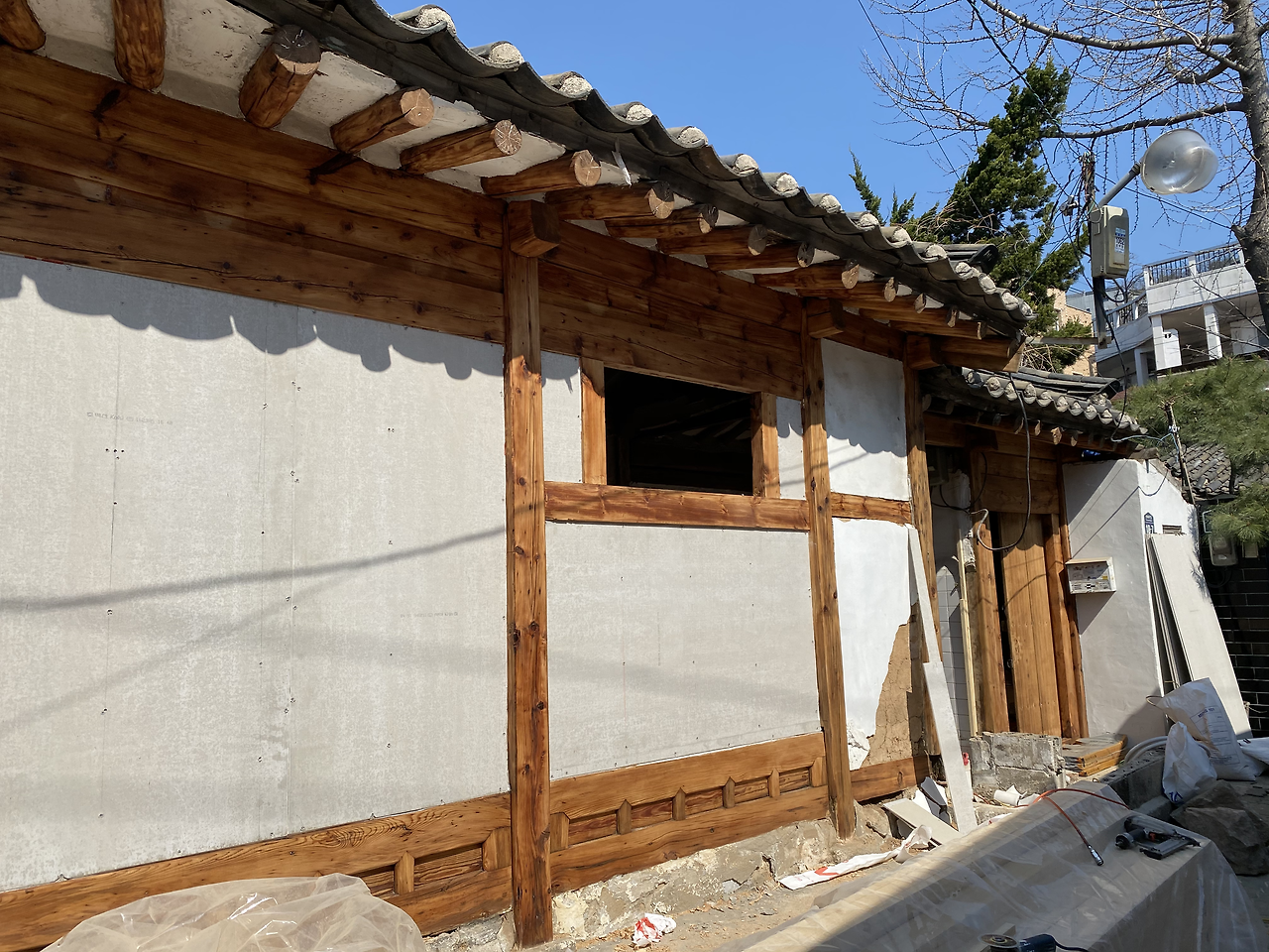 이번 주에 미장공사도 시작하려 했는데 목, 금요일에 비가 온다는 예보가 있어서 다음 주로 미루었다고 한다. 이번에 미장을 맡아 줄 사장님은 지난번 성북동소행성 공사 때도 와서 벽을 발라준 분이다. 임 목수님이 전부터 대한민국 미장 중 최고라고 하던 분이다. "사장님이 엄명을 내리셨어요. 황토를 구해놓으라고."라고 임 목수님이 말하자 아내는 "사장님이 구하라고 하면 구해 놔야죠."라며 임 목수님을 압박했다. 우리가 그만 가자,라고 말하며 밖으로 나오니 화장실 지붕 위에서 작업을 하고 있던 김정국 목수님이 구슬땀을 흘리면서 안녕히 가시라고 인사를 했다. 우리는 조심하시라고 말하고는 얼른 골목을 벗어났다.