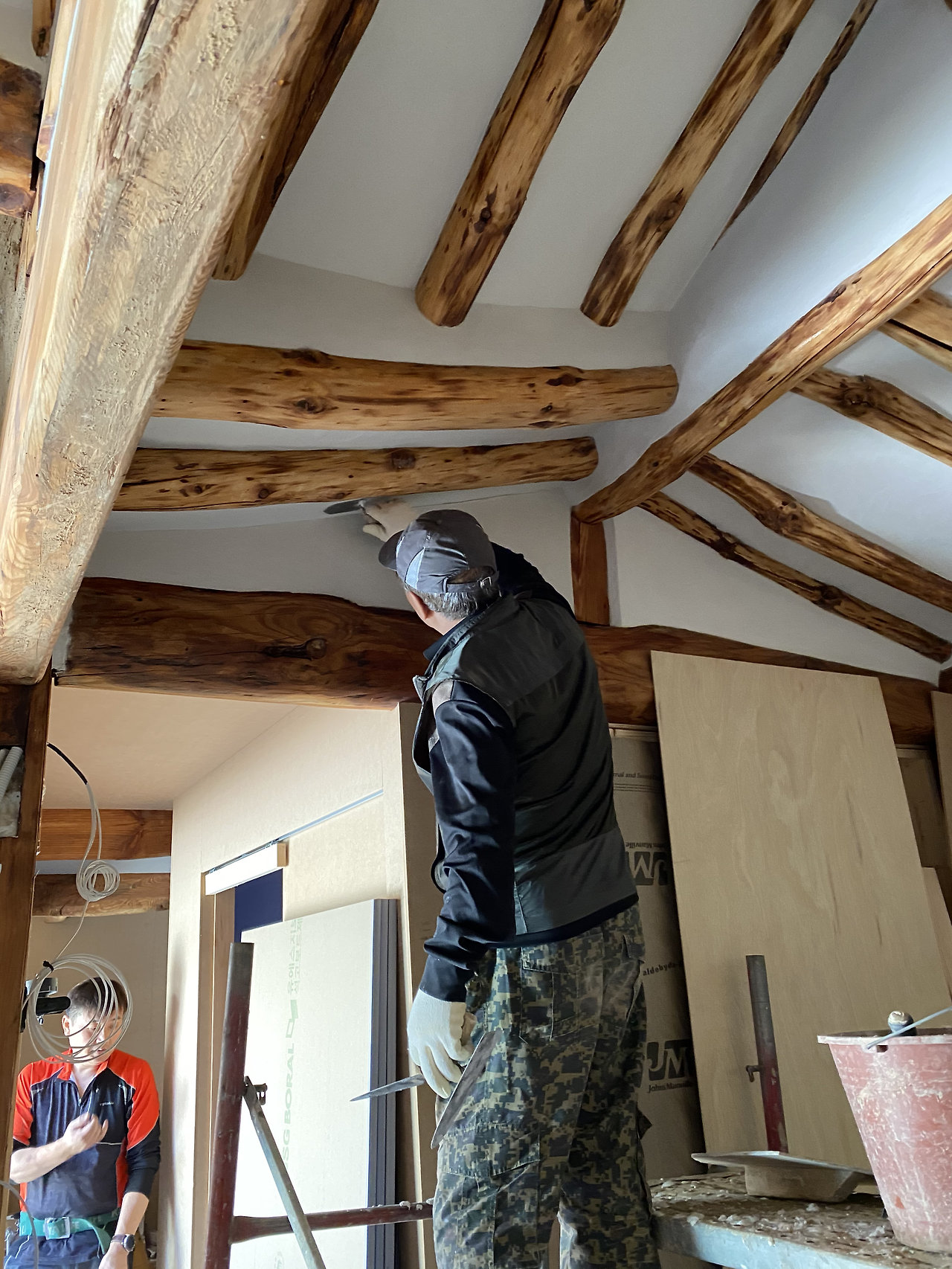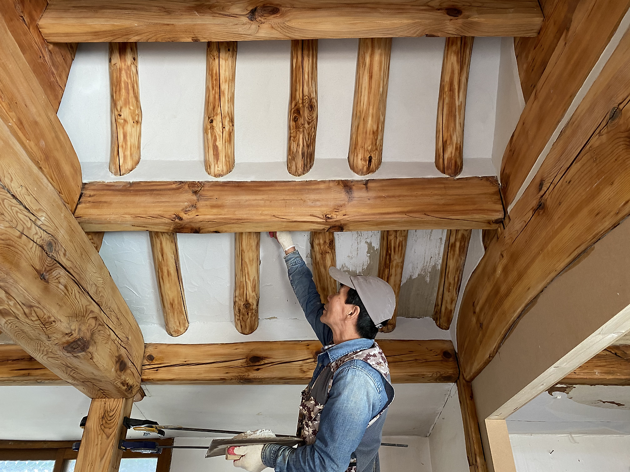 이필식 장인이 서까래가 보이는 흰 벽을 작은 흙손으로 세심하게 덧바르고 있었다. 크기가 다른 세 가지 흙손을 한 손에 쥐고 하나씩 꺼내 쓰는 모습은 언제 봐도 무슨 묘기처럼 보인다. 정말 이쁘네요,라고 말하자 아, 정말 이쁘죠!라고 이필식 사장님도 웃으며 말했다. 자기가 하는 작업인데도 그 깔끔하고 고급스러운 모양새에 감탄이 나오는 모양이다. 다른 공사 현장이 어떤지는 잘 모르지만 우리 집을 고쳐주는 분들은 모두 인성이 밝고 순해서 내가 큰 복을 받은 느낌이다. 욕실은 ABS 도어를 달 거고 바닥은 강화마루와 우레탄으로 할 것이라는 얘기는 어제 아내와 같이 들어서 알고 있었다. 나 혼자서 뒷짐을 지고 돌아다니기도 뭐하고 해서 "그럼, 전 가볼게요."라고 말하고 얼른 마당으로 나서더니 임 목수님이 빙긋이 웃었다. 아내가 없으니 평소보다 빨리 사라지는 나의 숫기 없음이 느껴져서일 것이다. 나는 괜히 부끄러운 생각이 들어서 인사를 하는 둥 마는 둥 하고는 큰길까지 빠른 걸음으로 빠져나갔다.