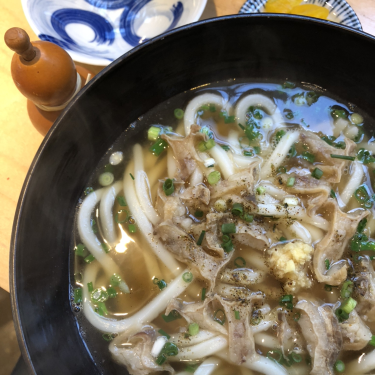 우동이 나왔습니다. 여기 우동 면발이이야 쫄깃하기로 소문났지만 역시 오늘도 면발에 탄력이 넘칩니다. 그리고 면발 사이에 쫄깃하면서도 질기지 않은 소내장이 적당한 크기로 썰려 나왔습니다. 이게 바로 아부라카스인 모양입니다. 양도 굉장히 많았습니다.