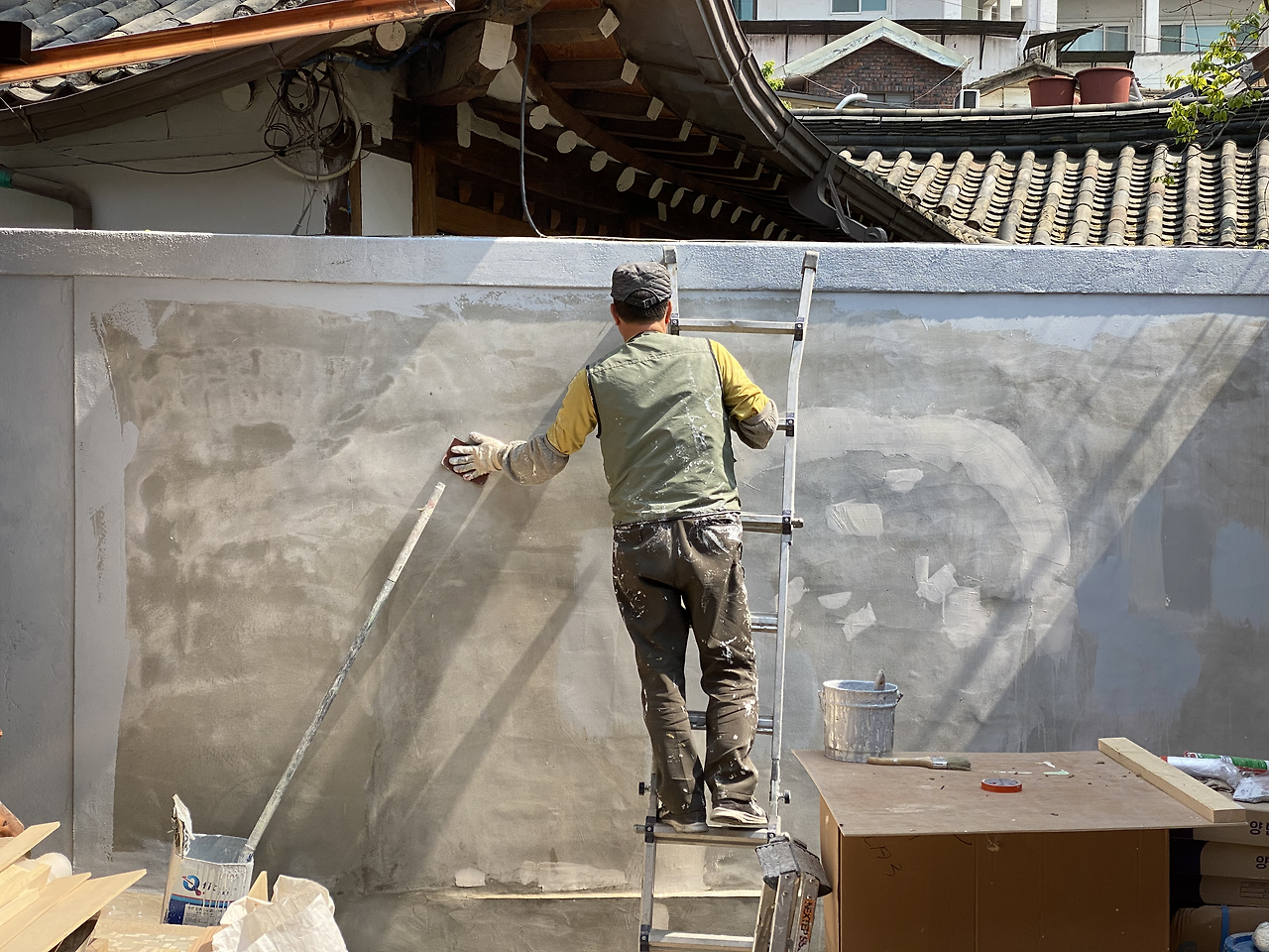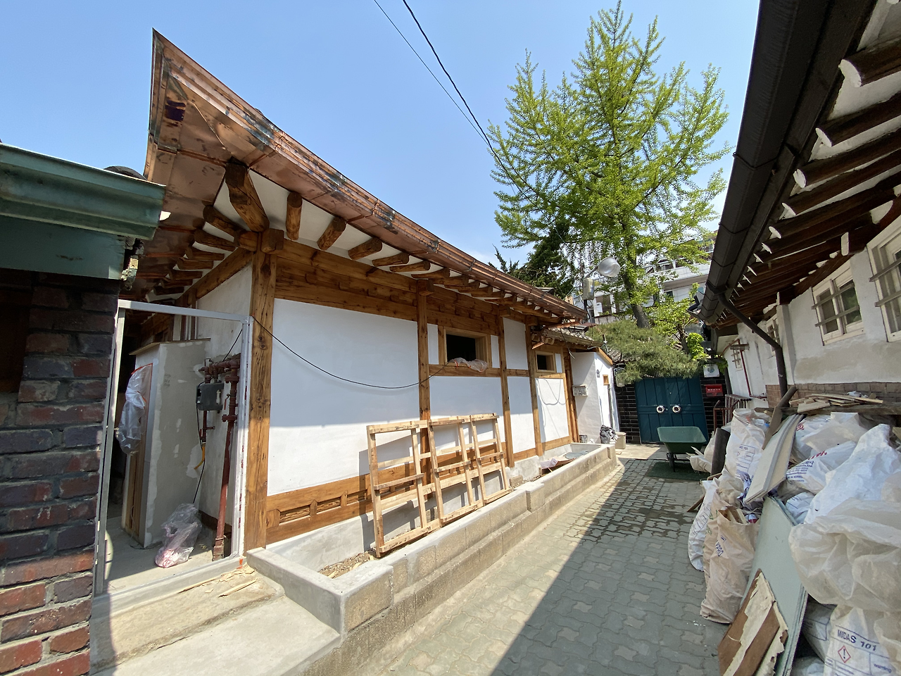 한쪽에선 목공 작업이 한창이라 마당엔 톱밥 먼지가 가득했다. 새삼 벽 너머에 사는 분들에게 고마움과 미안함이 한꺼번에 몰려왔다. 옆집 한옥은 가정교회를 하는 분들인데 한 달이 넘도록 발생하는 많은 먼지와 소음에도 얼굴 한 번 찡그리는 법이 없었다. 아내와 나는 이번 주말 이전에 과일이라도 사 가지고 찾아가 다시 인사를 드리기로 했다. 아름다운 서까래나 책꽂이보다 더 큰 재산은 어질고 품격 있는 이웃이라는 걸 우리는 잘 알고 있기 때문이다.
