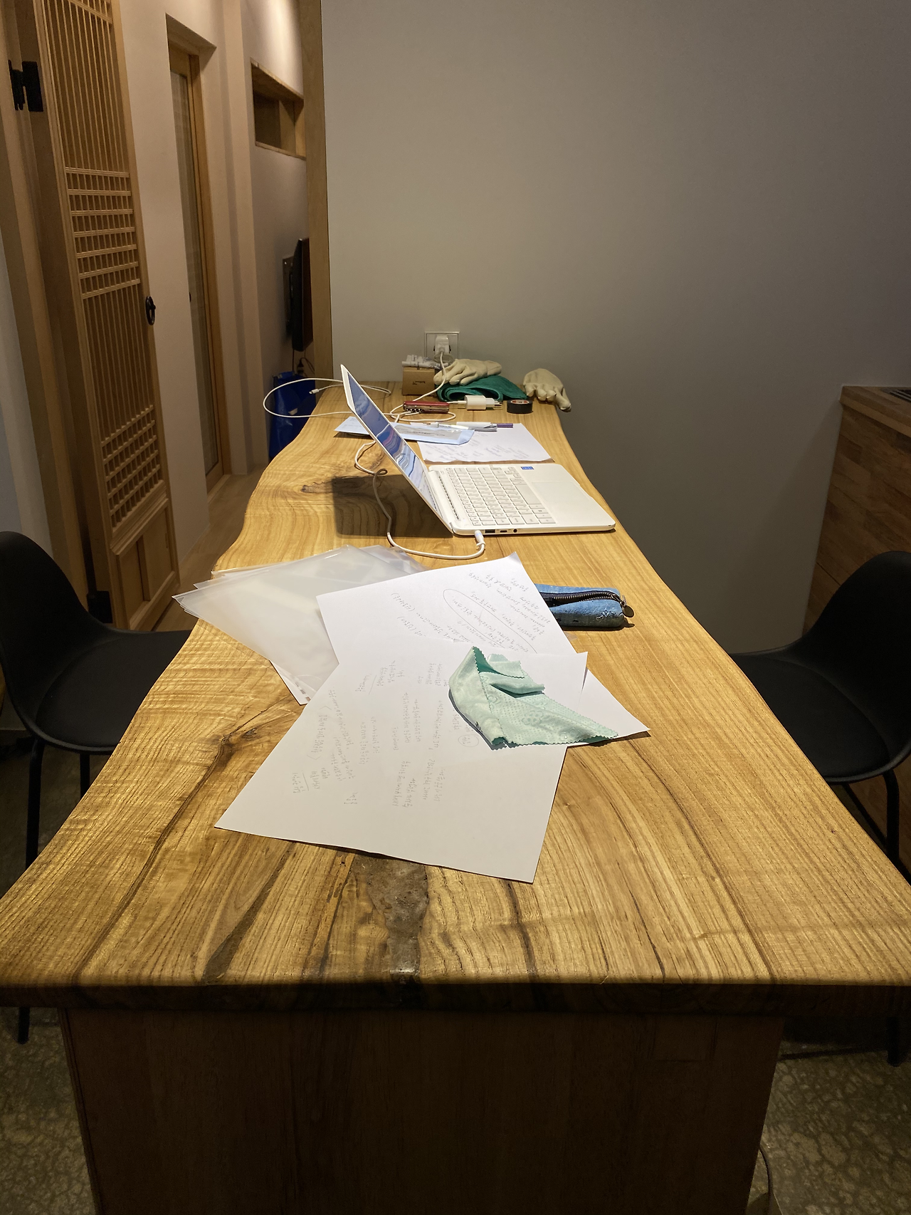 금요일엔 파란대문집 이정옥 대표와 배우 이승연이 와서 청소를 도와주었다. 두 사람 다 이사를 연기하게 되어 정말 다행이라고 진심으로 축하를 해주었다. 요즘 내가 가서 혼자 공유 거실을 차지하고 앉아 글을 쓰곤 하는 파란대문집의 이정옥 대표와는 임정희 목수님 얘기를 많이 했다. 공간 공유사업 이전부터 건축과 설계 관련 일을 많이 했던 이 대표가 예전에 임 목수님과 작업을 해본 적이 있기 때문이었다. 솔직히 말하면 예전의 임 목수님은 투덜거리기를 좋아하는 목수였다고 한다. 그런데 4년 후 만나 본 임 목수님은 너무나 많이 달라져 있어 놀랐다고 했다. 우선 작업을 대하는 태도가 매우 느긋해졌고 디테일도 강해졌다는 것이다. "말투부터 달라져 있더라고요."라고 이 대표가 말하고 있는데 마침 임 목수님이 나타났다.