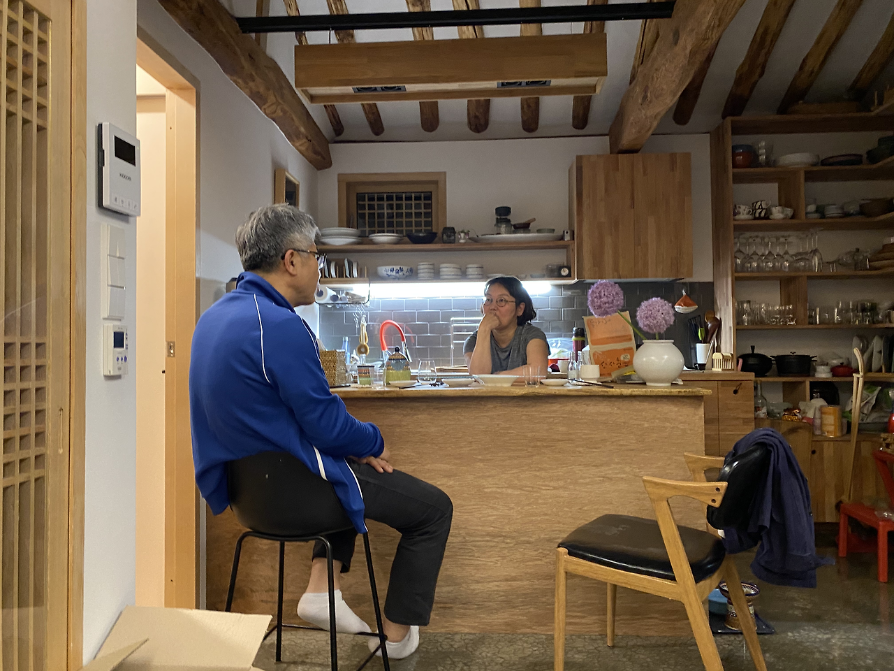 아침 식사를 를 어떻게 할까 하다가 아내가 안동할머니청국장 어떠냐고 해서 거기로 가서 만족스러운 식사를 하고 집으로 돌아왔는데 오진이 본부장님과 지금은 농사꾼이 된 조성룡 선배님이 오셨다. 얼마 전 우리가 너무 커서 버리려고 내놨던 의자를 가지러 오신 것이었다. 유왕보 대표와 이소영 대표가 돌아가고 조성룡 선배님은 안으로 들아와 한옥을 구경했다. 아침부터 떠들썩한 분위기가 계속되자 낯선 사람을 좋아하던 순자도 약간 지친 표정이었다. 오늘은 '독하다 토요일'이 우리 집에서 열리는 첫날이고 내일은 내 생일이라 회원들이 앞다투어 술과 음식을 들고 오겠다는 내용으로 카톡방이 달궈졌다 늘 책보다는 먹고 마시는 것에 더 관심이 많은 우리 모임이, 나는 참 좋다.