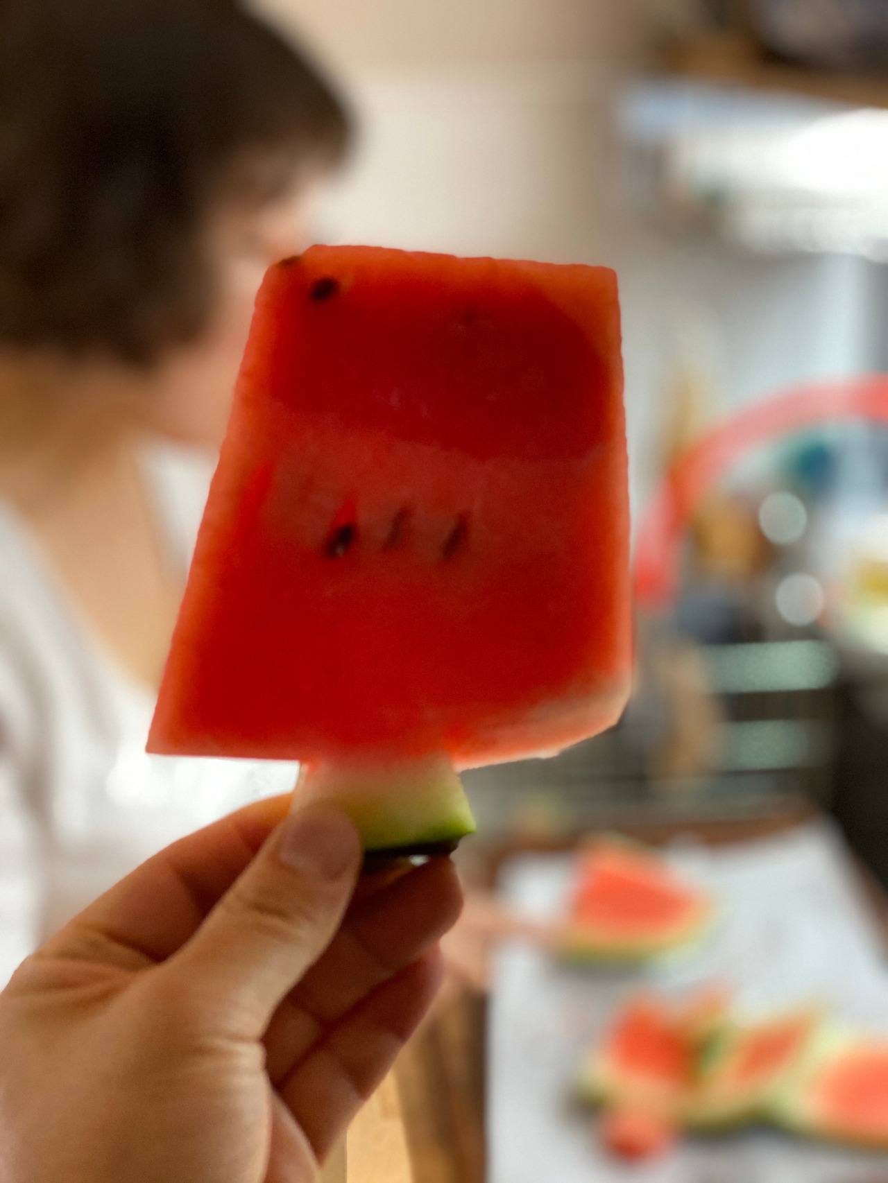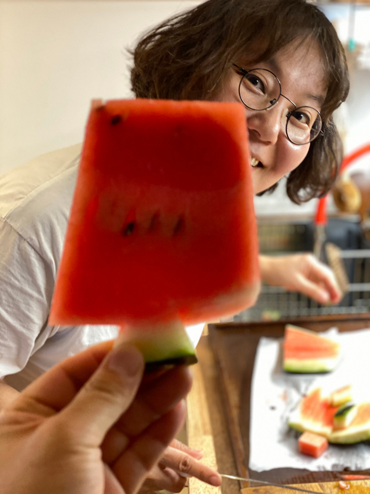 아내가 수박을 해체해서 이웃들에게 나눠주면서 내게는 수박바를 하나 만들어 주었다.