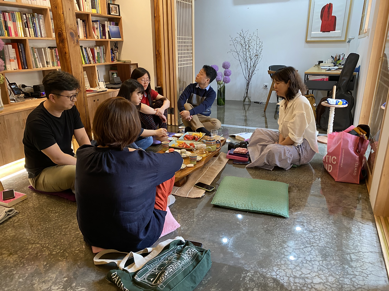 코로나19로 인한 팬데믹이 전 지구를 휩쓸고 있는 와중에 저와 윤혜자 씨는 어이 없게도 낡은 한옥을 하나 사서 고치느라 꼬박 세 달을 보냈습니다. 집을 고치고 이사를 한다는 게 신경 쓸 일이 한두 가지가 아니라서 지난 달 있었던 독하다 토요일 모임 후기(김해진의 [단순한 진심] 편)도 아직 쓰지를 못한 상황이었죠. 그런데 어찌어찌 집이 다 수리되어 저희가 이사를 하고 나니 독하다 토요일 모임을 저희집에서 하기로 했던 약속이 떠올랐습니다. 아직 마루에 테이블과 의자가 들어오기 전이지만 어쨌든 모임을 하기에 부족함은 없어보였습니다. 회원들이 와서 툇마루에 앉아 책을 읽다가 마루에 모여 이야기를 나눠도 괜찮겠다는 생각도 들었습니다. 2020년 5월 23일 오후 2시. 독하다 토요일 시즌4의 회원들이 하나 둘 모여들기 시작했습니다. 모임 장소가 저희집이기도 하고 또 그 다음날이 제 생일이라 사람들이 술과 안주를 싸 가지고 오겠다는 얘기가 단체카톡방을 달구고 있었습니다.