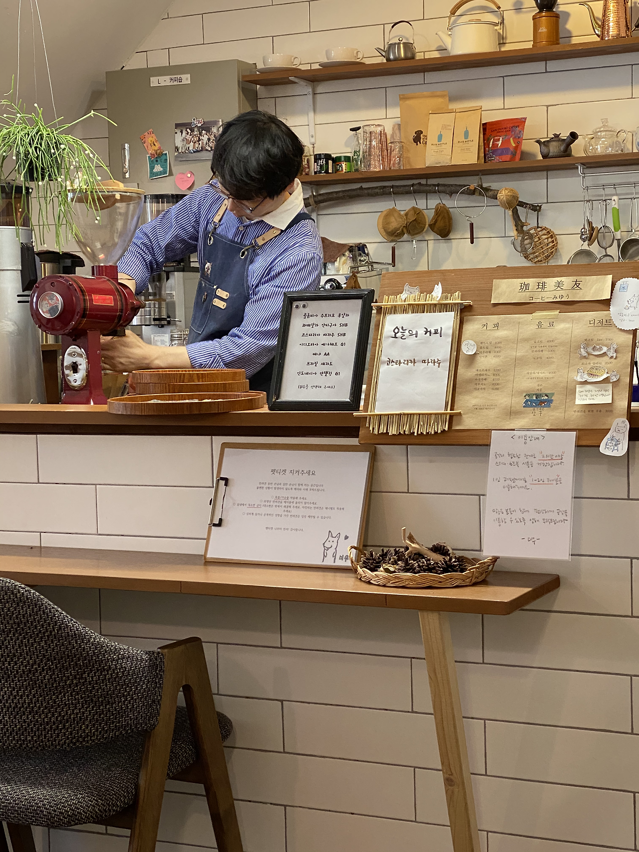 마포에 있는 변호사 사무실 건물에 있는 커피숍 커피가 맛있다고 해서 가서 기다렸으나 11시가 넘어도 가게 문을 열 생각을 하지 않아 절망하고 다시 길에 서서 커피가 맛있으면서 일요일 오전에 문을 여는 커피숍을 검색했다. 결국 효창공원 근처 있다는 카페 미우에 와 오늘의 커피를 시켰다.