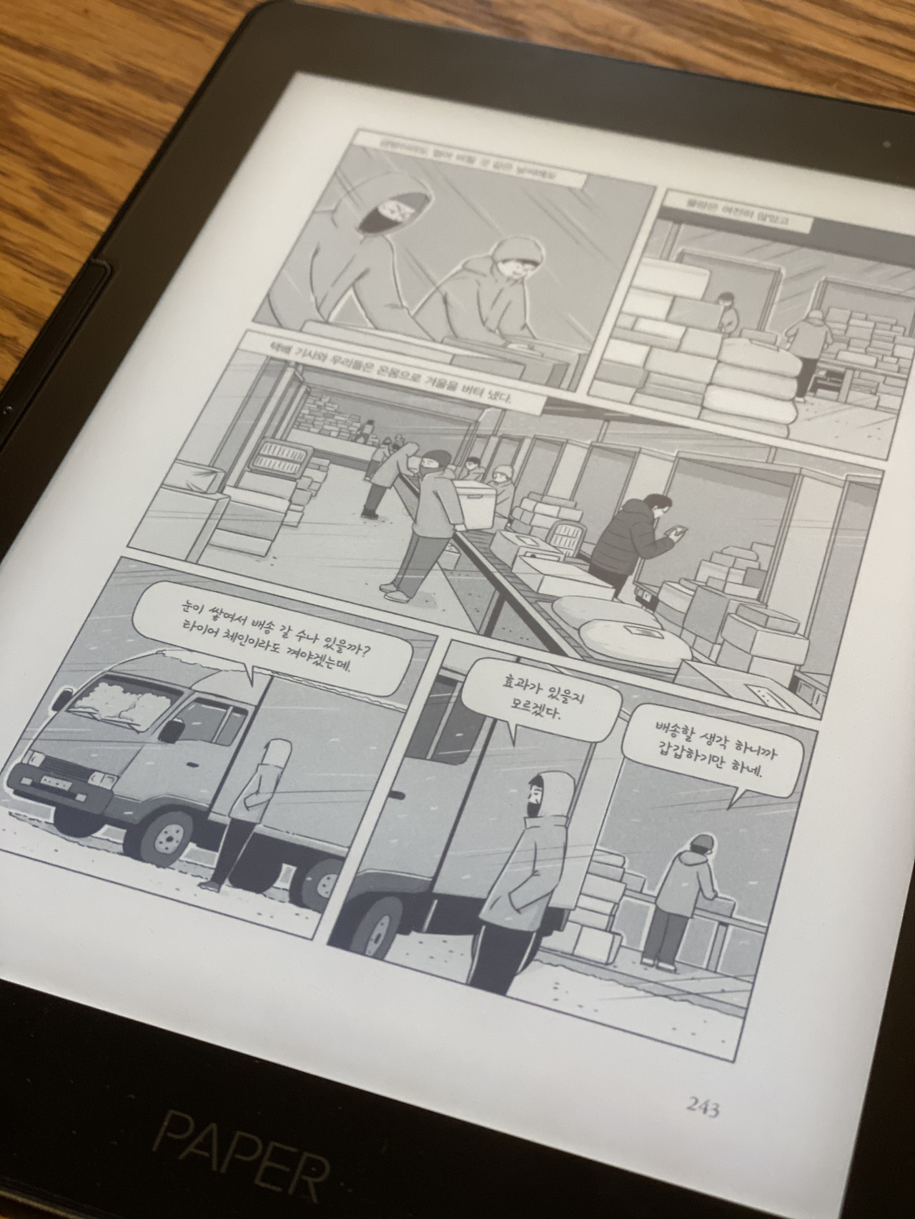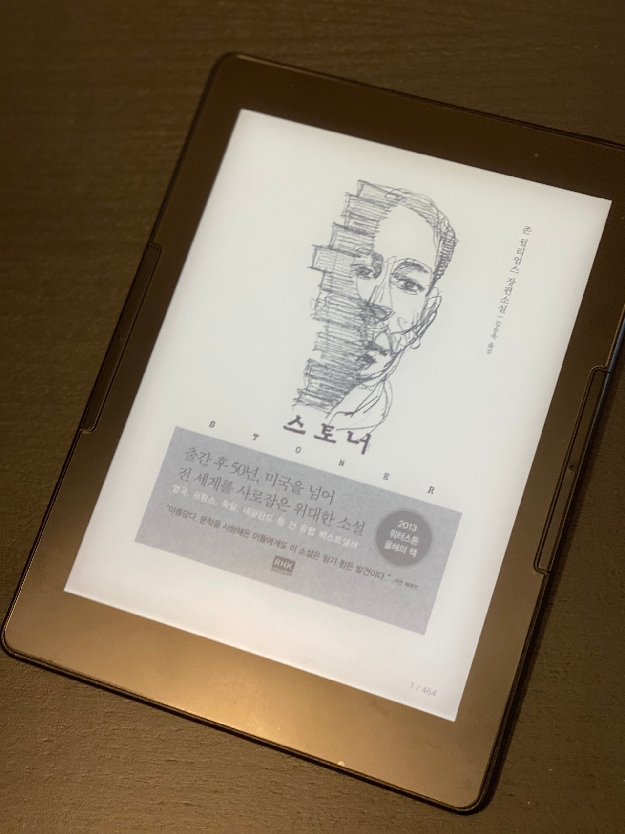 전자책은 특히 소설을 읽을 때 좋다. 언제 어디서나 이어서 읽기 편해서일까. 미야베 미유키의 [벚꽃, 다시 벚꽃] 같은 추리소설로 시작한 전자책으로 소설 읽기는 존 스칼지의 [노인의 전쟁]이나 정명섭의 [유품정리사]처럼 비주얼과 스토리 라인이 화려한 소설도 좋았지만 의외로 존 윌리엄스의 [스토너], 줄리언 반스의 [연애의 기억], 앨리스 먼로의 [거지 소녀] 같은 정통 소설까지 잘 읽혔다. 물론 [거짓말이다]를 쓴 소설가 김탁환이 세월호 유족들에게 못다 한 이야기를 단편소설들에 담아낸 [아름다운 그이는 사람이어라]나 젊은 작가 박상영의 놀라운 데뷔작 [알려지지 않은 예술가의 눈물과 자이툰 파스타]와 후속작 [대도시의 사랑법] 같은 단편집을 읽은 것도 전자책을 통해서였다. 택배 노동자의 일상을 다룬 이종철의 만화 [까대기]도 전자책으로 사서 읽었는데 그 이후 서천에 있는 국립행양생물자원관에 황선도 관장님을 만나러 갔다가 우연히 거기서 이종철 만화가와 합석해 같이 저녁을 먹으며 '책 잘 읽었다'라고 인사를 했더니 어디선가 내가 쓴 짧은 독후감을 읽은 기억이 난다고 해서 혼자 뿌듯해하기도 했다.