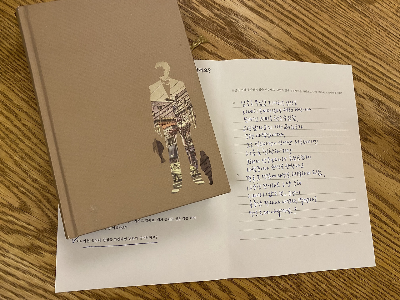 어쨌든 질문서점 인공위성 덕분에 소설책 한 권을 잘 읽었습니다. 책을 다 읽고 먼저 리뷰를 쓴 분들을 찾아보니 대부분 "책을 받았다. 이제 신나게 읽어야지"라는 소감만 있고 본격적인 독후감은 아직 없는 것 같아 조금 망설이다가 에라, 모르겠다 하고 멋대로 리뷰를 써봤습니다. 같이 보내준 '에디터 가이드'의 답안지란도 그냥 비워두기가 뭐해서 뭔가를 끄적끄적 적어보았습니다.