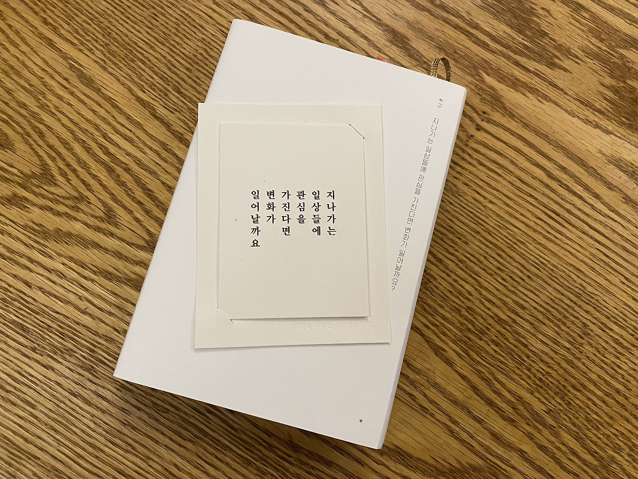 질문서점 인공위성이 보내주는 책을 받았습니다. 이 책방은 독자들에게 던지는 질문 몇 개와 함께 블라인드 북(제목을 알 수 없게 가린 책)을 보내주는데 이번에 제게 온 질문은 '지나가는 일상들에 관심을 가진다면 변화가 일어날까요'라는 물음표도 없는 문장이었고 함께 받은 책은 히가시노 게이고의 [신참자]였습니다.