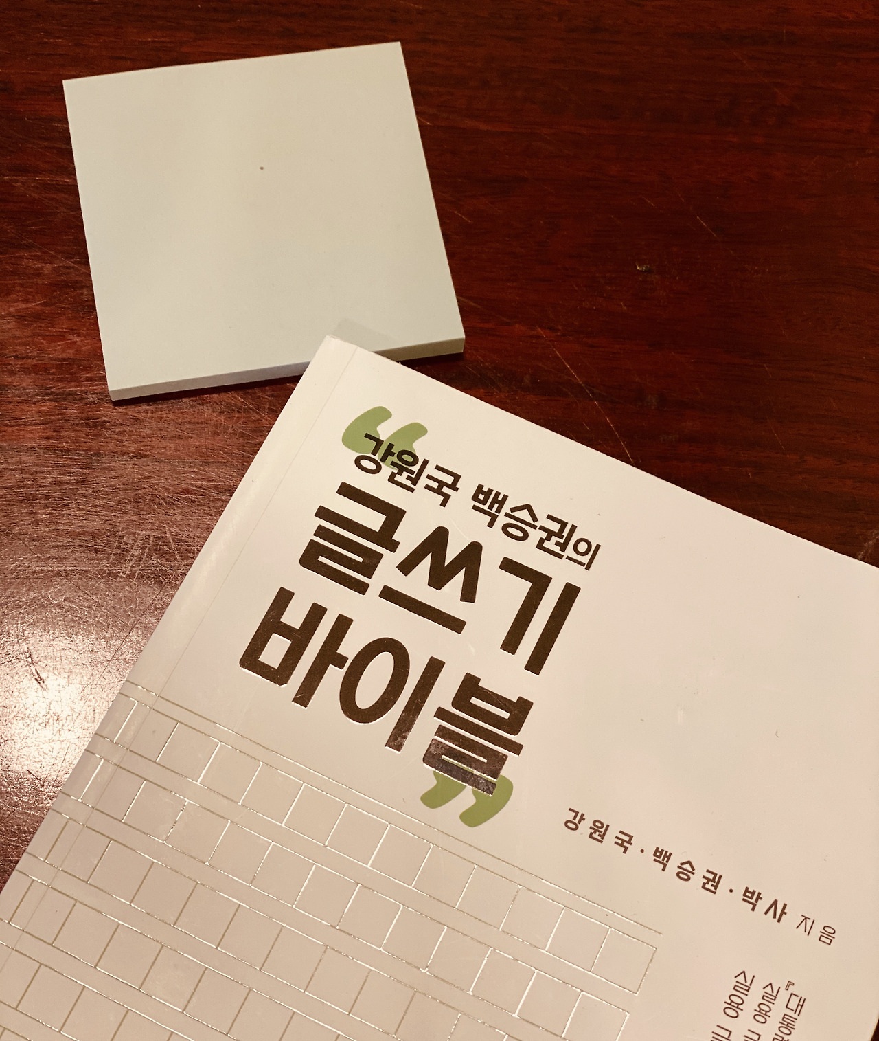 이 책은 베스트셀러 [대통령의 글쓰기]를 쓴 강원국 작가와 [보고서의 법칙]으로 실용 글쓰기의 새 장을 연 백승권 대표가 팟캐스트로 내보냈던 방송을 책으로 엮은 것이다. 사회를 보는 작가 박사는 책도 여러 권 냈지만 '책 듣는 밤'이라는 낭독 프로그램을 통해 많은 팬을 거느리고 있는 인플루언서다. 나는 팟캐스트는 듣지 못하고 책으로만 '글쓰기 바이블'을 영접했다. 맨 처음 책을 열면 글쓰기 전에 가져야 할 자세부터 이야기하며 슬슬 시동을 거는 강원국 작가의 모습이 보인다. 뇌는 무언가 착수했을 때부터 활성화 하기 시작한단다. 그러니 일단 쓰는 게 중요하다. 자판 위에 손을 얹든지 펜을 거머쥐든지 종이 위에 쓰든지 해야 글이 나온다(영화 [파인딩 포레스트]에 나오는 말 : "글을 쓰는 첫 번째 열쇠는 생각하는 게 아니라 쓰는 것이다."). 백승권 작가는 세상의 명문장들을 수집했던 도스토옙스키처럼 좋은 문장들을 많이 모아서 자신의 것으로 만들라고 충고한다.