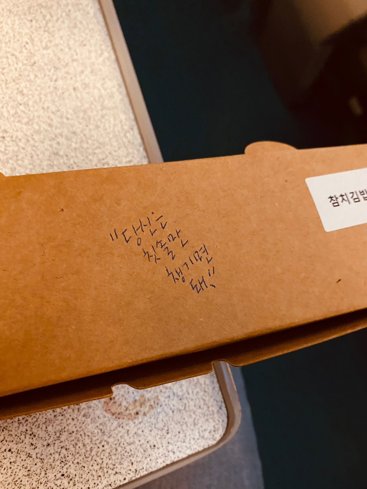 용산 KTX 대합실 뚜레쥬르에서 산 커피와 샌드위치로 이른 아침을 먹은 내가 작게 비명을 질렀다.