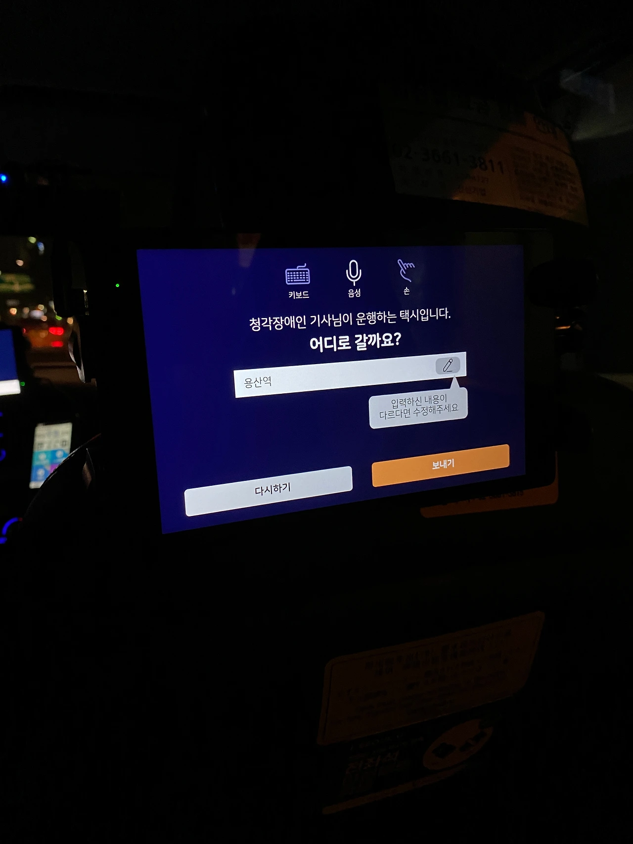 신용카드와 대문열쇠, 스마트폰 등을 모두 확인한 뒤 집안의 불을 모두 껐다. 고양이 순자는 안방 이불 위에서 세상모르고 자고 있었다. 가방 세 개를 나눠 들고 매고 밖으로 나와 택시를 탔다. 가방을 들고 타면서 “안녕하세요?”하고 평소 버릇대로 인사를 했는데 대답이 없길래 앞을 쳐다보니 청각장애인 기사님이었다. 아내가 좌석 위에 붙은 단말기 마이크 버튼을 누르고 “용산역으로 가주세요.”라고 말하니 앞쪽 단말기에 아내가 얘기한 내용이 텍스트로 뜨고 기사님이 오른손 손가락을 동그랗게 말아서 오케이 표시를 했다. 기사님은 듣지 못할 텐데 이상하게 트로트 음악이 작게 틀어져 있길래 아내가 꺼달라고 다시 말했더니(역시 단말기를 누르고) 바로 음악을 꺼주셨다. 용산역에 도착했다는 안내방송을 들은 우리는 신용카드로 택시비를 지불한 뒤 인사를 하고 내렸다. 새벽 5시 40분이었다.