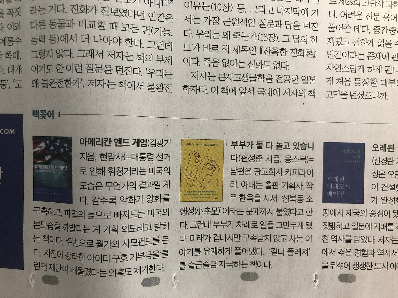 중앙일보에 짧은 책 소개 기사가 났는데 ‘길티플레저를 슬금슬금 자극하는 책’이라고 서평을 했습니다. 고마운 일입니다.