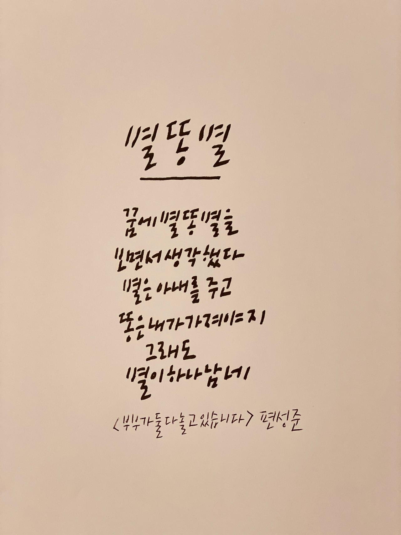꿈에 별똥별을 보면서 생각했다 별은 아내를 주고 똥은 내가 가져야지그래도 별이 하나 남네
