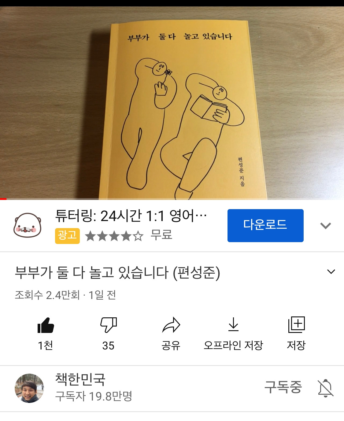 [부부가 둘 다 놀고 있습니다]가 유튜브에 떴습니다