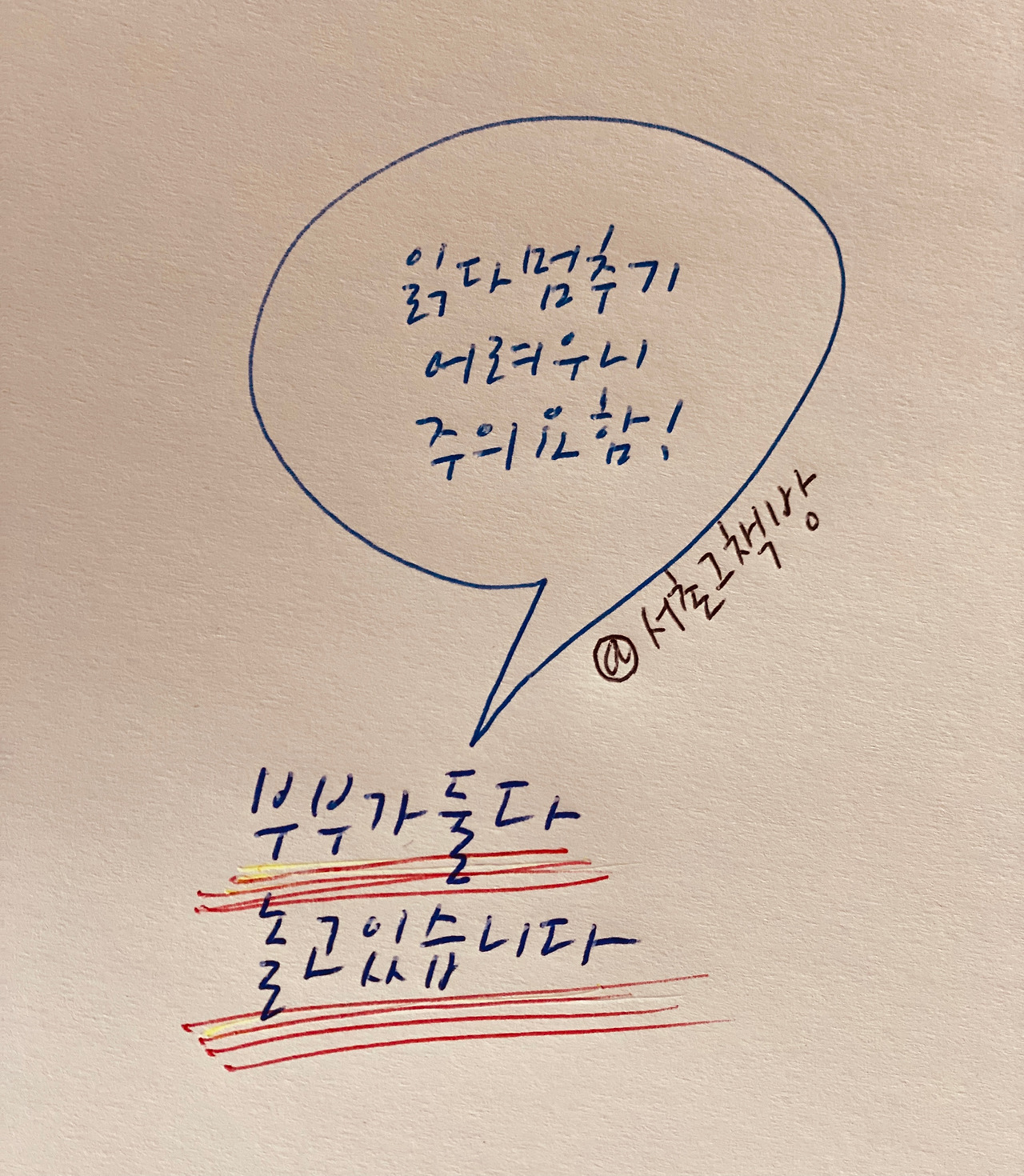 어제는 ‘서촌그책방’에 가서 제 책에 저자 싸인을 몇 권 했습니다. 하영남 사장님이 운영하시는 독서클럽 회원들을 위한 ‘예약 싸인 행사’였던 거죠. 독서모임은 어제가 아니었지만 ‘미리 책을 신청하신 분들을 위해 제가 일요일에 책방에 먼저 와서 싸인을 좀 해주면 어떻겠냐’는 사장님의 제안에 제가 응했던 것입니다.