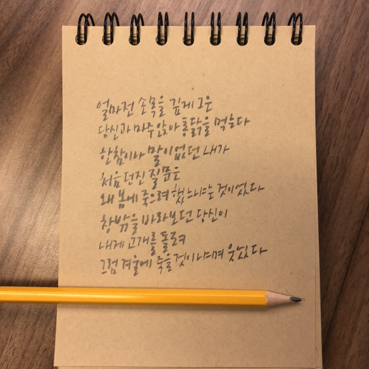 [우리가 함께 장마를 볼 수도 있겠습니다]라는 시집이었다. 무심히 책을 펼치니 <능곡 빌라>라는 제목과 <그해 봄에>라는 시가 눈에 들어왔다. 두 번째 시가 더 재미 있어서 노트에 노란색 스태들러 연필로 일부를 옮겨보았다. 봄을 단박에 이토록 처연한 계절로 만들어버리다니. 박준은 시를 참 잘 쓰는구나 생각했다.