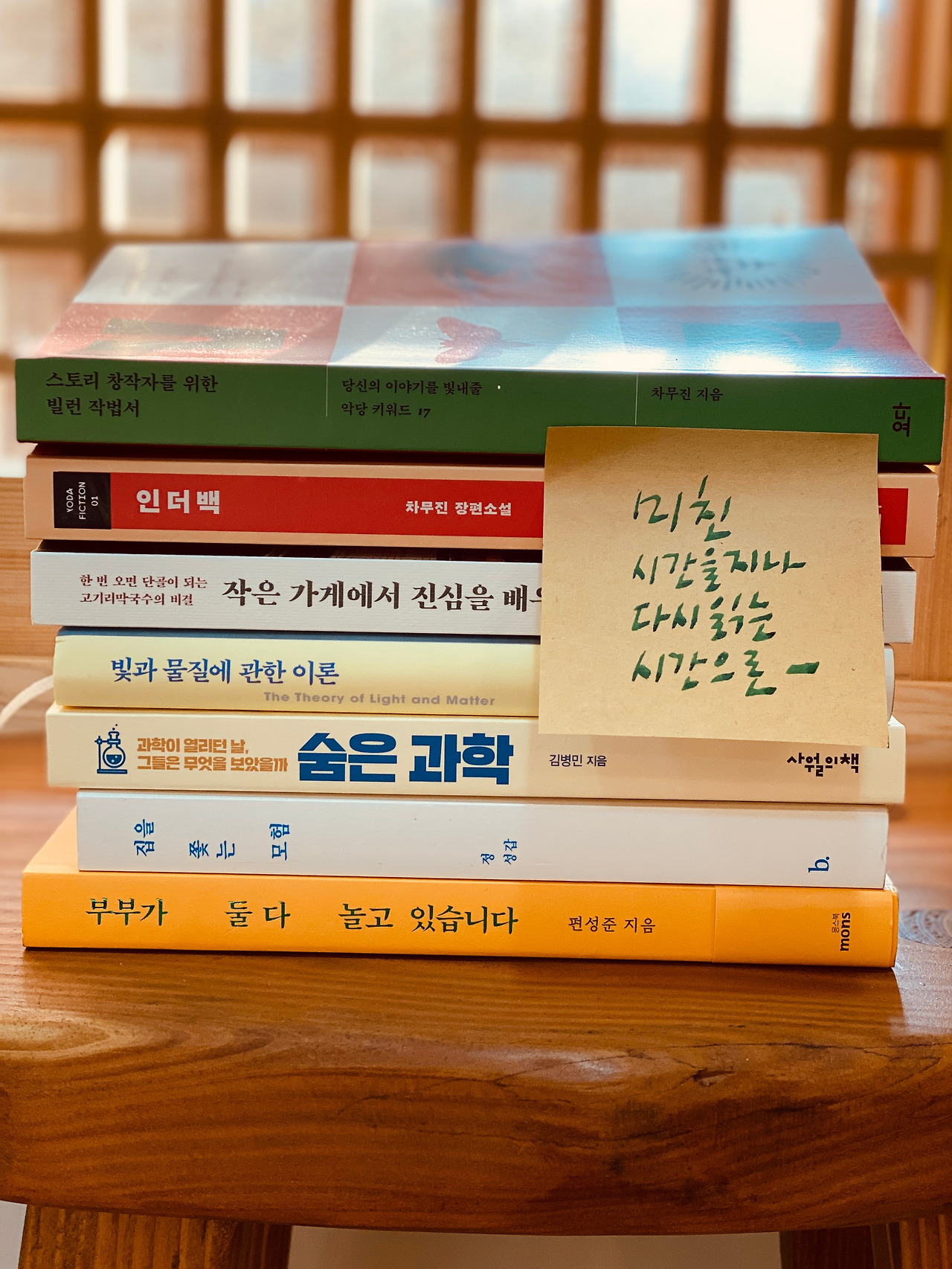 읽다가 시간이 없어서 덮어놨던 정성갑의 [집을 쫓는 모험]을 다시 펼쳐 들었다. 하루키의 [양을 쫓는 모험]엔 돌핀호텔과 귀가 매력적인 여자가 나오지만 이 책엔 아파트와 한옥, 빌라, 협소주택 들이 차례대로 나왔고 '집을 쫓는 모험이 곧 나를 찾는 모험'이라는 깨달음도 나왔다. 한기호 소장님을 만난 다음날 동양서림에 주문했던 차무진의 [스토리 창작자를 위한 빌런 작법서]를 찾아 읽으면서 내가 그동안 책이나 영화, 드라마 들을 얼마나 건성으로 읽고 보았는지 뼈저리게 반성했다. 내친김에 그의 소설 [인 더 백]도 단숨에 읽었다. 아내가 사서 읽고 있던 김윤정의 [작은 가게에서 진심을 배우다]를 옆에서 훔쳐 읽었고 김병민의 [숨은 과학]을 사서 일단 머리말부터 밑줄을 쳤다. '서촌그책방' 사장님이 추천해서 사 온 [빛과 물질에 관한 이론] 중 <구멍> <코요테> <아술> <빛과 물질에 관한 이론>을 읽었는데 한 편 한 편 너무 뛰어난 단편들이라 함부로 책장을 넘기기가 무서울 지경이었다. 엘리자베트 스트라우트의 [올리브 키터리지] 이후 이렇게 뛰어난 소설들을 읽는 재미는 오랜만이었다. 참, 스트라우트의 소설 [모든 것이 가능하다]도 사놨는데 단 한 장도 넘기지 못하고 있다. [올리브 키터리지]의 속편 격인 [다시 올리브]는 서점에서 집어 들었다가 다시 내려놓았다. 당분간 읽지 못할 것 같아서였다. (넷플릭스도 가입만 해놓고 건성으로 보내다가 요 며칠 아내와 함께 [퀸스 갬빗] 6편을 겨우 봤다) 도대체 내 책에 관한 글을 쓰고 내 책에 관한 글과 사진들에 댓글을 다는 미친 짓을 하느라 다른 책을 읽을 시간이 이렇게 없다는 게 말이 되는가! 한심했다.