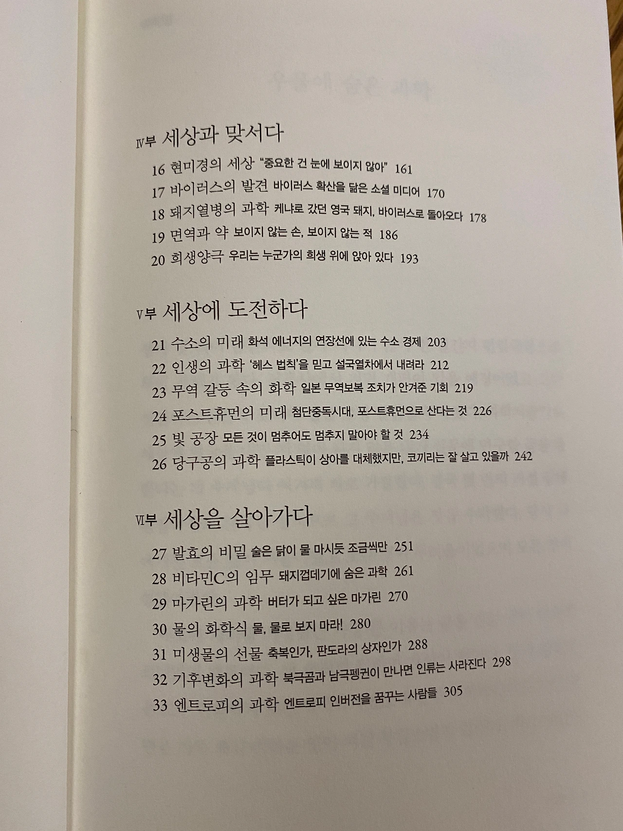 이 책은 '빛의 속도로 나는 슈퍼맨'이라는 메타포로 빛의 속도가 초속 30만 킬로미터라는 것을 설명하면서 결국 빛이 일정한 속도의 상수값을 가지기에 오늘날의 화상통화나 자동차 내비게이션도 가능하다는 것을 알려준다. 18세의 천재였던 윌리엄 퍼킨이 실수로 보라색 염료를 발견함으로써 얼마나 많은 해양자원을 보호할 수 있었는지도 알려준다. 이는 석유의 발견으로 향유고래의 포획을 중지할 수 있었다는 역사적 사실로도 이어지는데 만약 당신이 영문학 전공자라면 허먼 멜빌의 [모비딕]을 예로 들면서 나름의 교양을 뽐낼 수도 있을 것이다. 김병민은 지금 우리나라 사람들은 눈만 뜨면 미세먼지 수치를 검색하지만 석탄 연료를 주로 사용했던 1980년대의 서울은 당시의 중국보다 공기가 더 나빴다는 사실도 알려준다. 그런데 이런 것만 알려주고 그치는 게 아니라 지금 우리에게 필요한 건 미세먼지마저 걸러주는 성능 좋은 마스크가 아니라 '과학으로 증명된 범인을 찾고, 더디고 불편해도 참고 실행할 수 있는 해결책을 만드는 것인데, 그 불편함을 참고 수고할 의향이 있는지부터 스스로에게 물어야 한다'는 거시적인 통찰까지 던져준다. 이런 생각은 책 안에서 코로나 19나 아프리카 돼지열병 뒤에 숨어 있는 인간의 '욕망'을 거론할 때 역시 빛이 난다.
